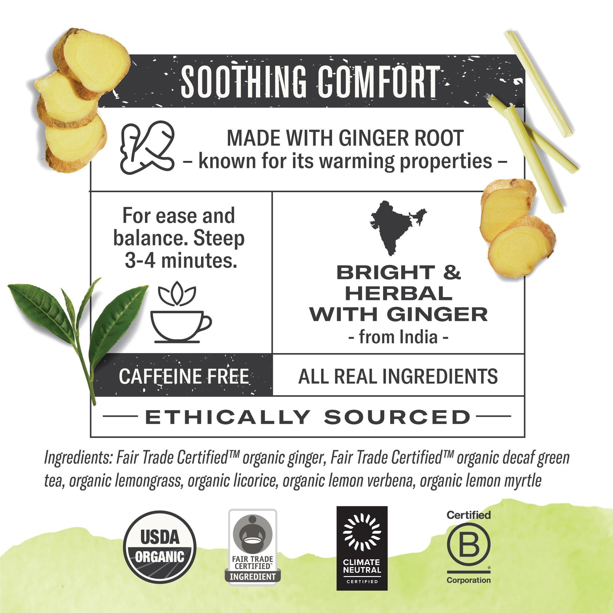 Decaf Ginger Lemon Green Tea: Now with lemon verbena, lemongrass, and sweet licoric; Numi's Decaf Ginger Lemon deliciously blends organic sweet citrusy lemongrass and invigorating ginger into an organic decaffeinated green tea