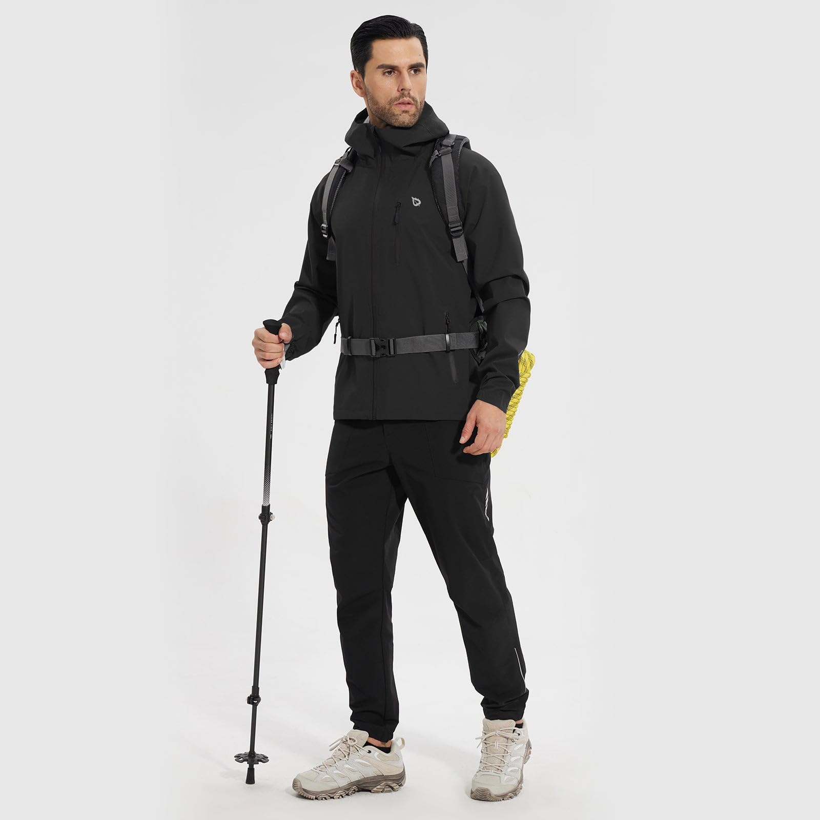 Upgraded Waterproof Fabric: The men's rain jacket interior is fully waterproof seam-sealed membrane with 10000mm waterproofing and 5000g/m2/24hr breathability, durable enough to withstand anything. Ventilation system in the back enhanced breathability that helps keep you cool and dry.