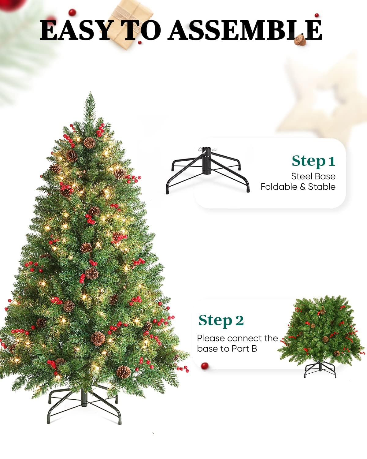 PRELIT TREE: This Christmas tree with lights is a prelit design, 300 clear warm lights are pre-strung, will bring a warm atmosphere in winter season.