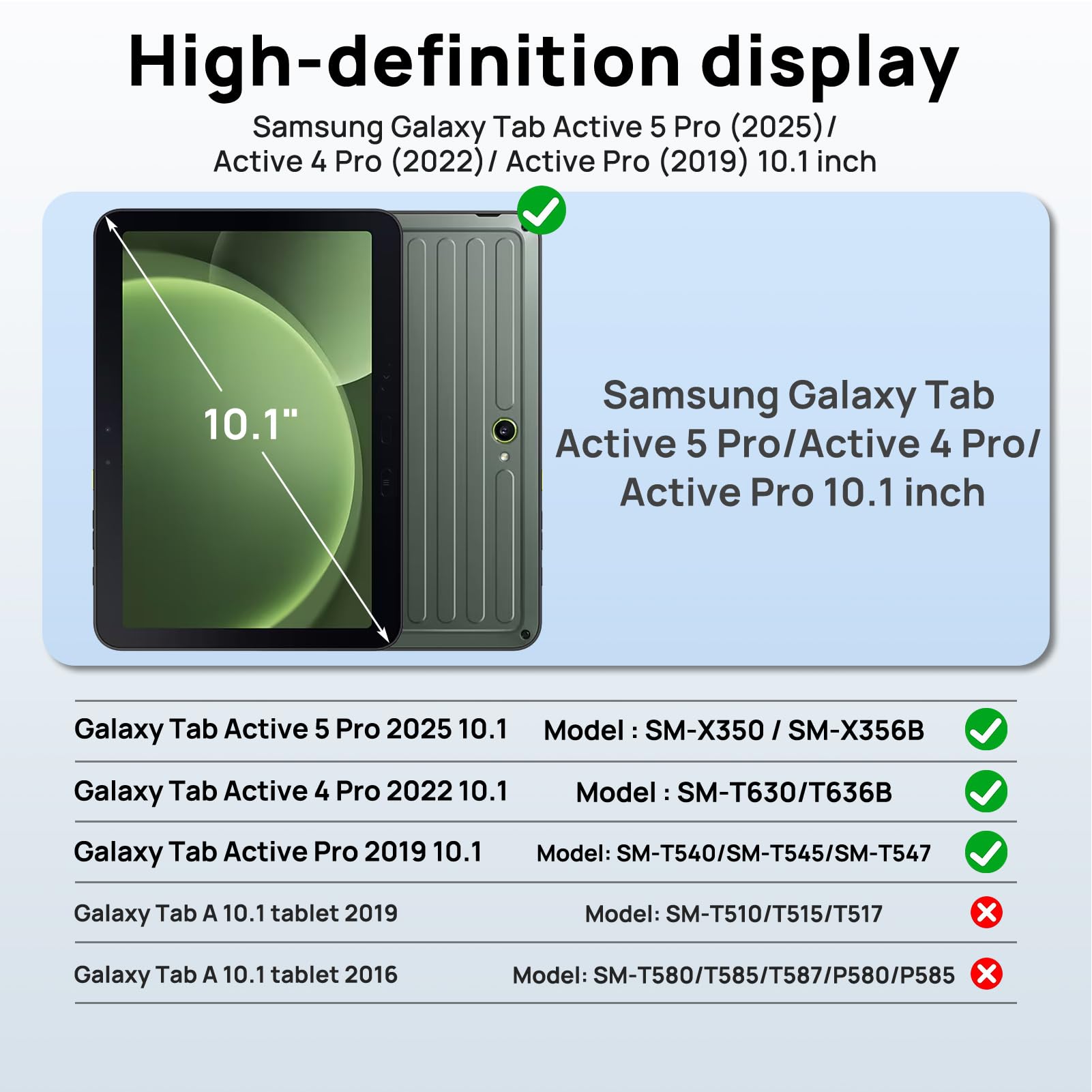 [Compatibility]: Specially designed for Samsung Galaxy Tab Active5 Pro 2025 10.1 inch (Modell: SM-X350/SM-X356B); Galaxy Tab Active4 Pro 2022 10.1 inch (Model: SM-T630/T636B), Active Pro 2019 10.1 inch (Model: SM-T540/T545/T547), full access to all buttons, ports and functions