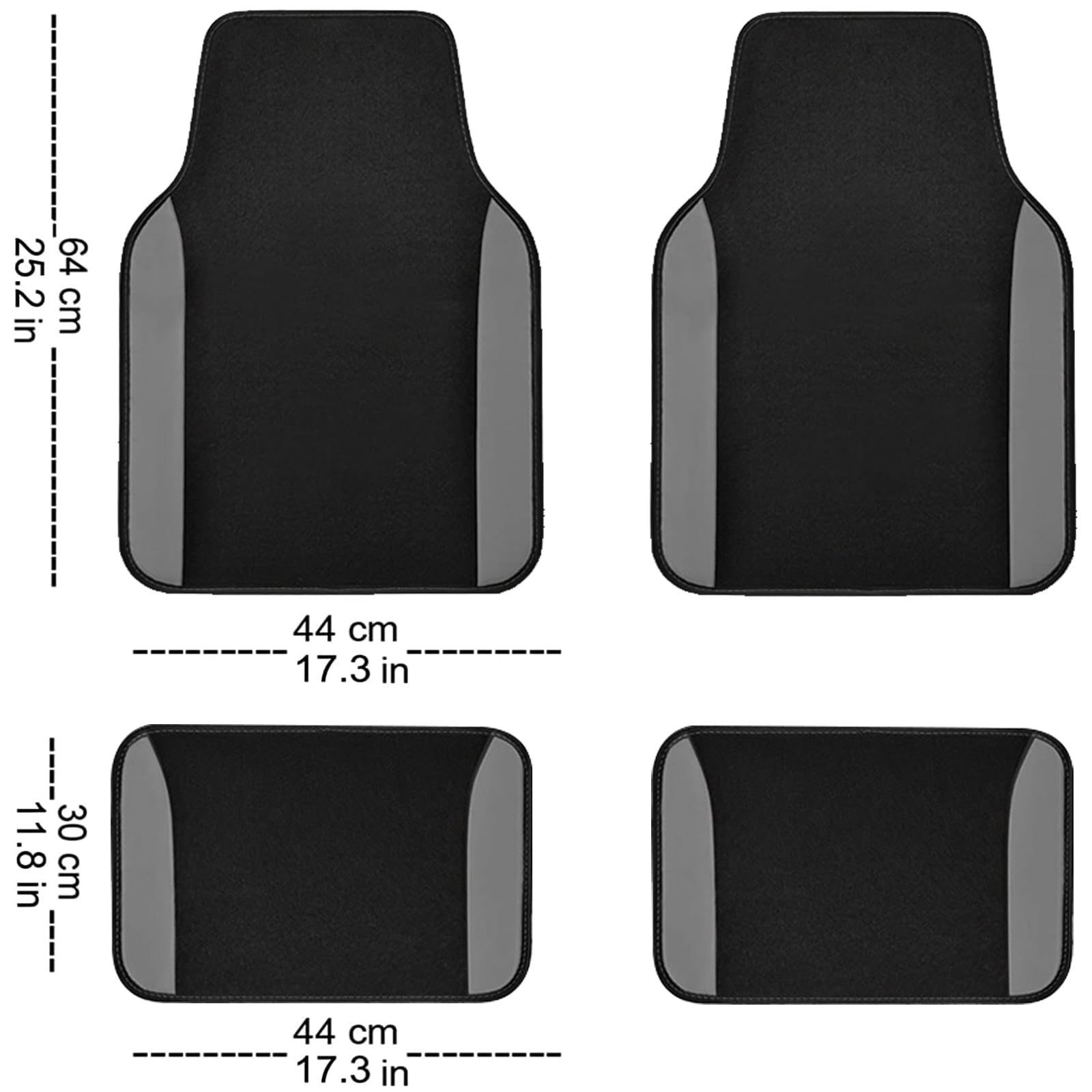 MADE TO STAY IN PLACE – We included rubberized nibs on the bottom side of our floor mats so that they won’t move around while in use during your next drive. Ergonomic grooves located on top of the mat help to give your foot traction & comfort.