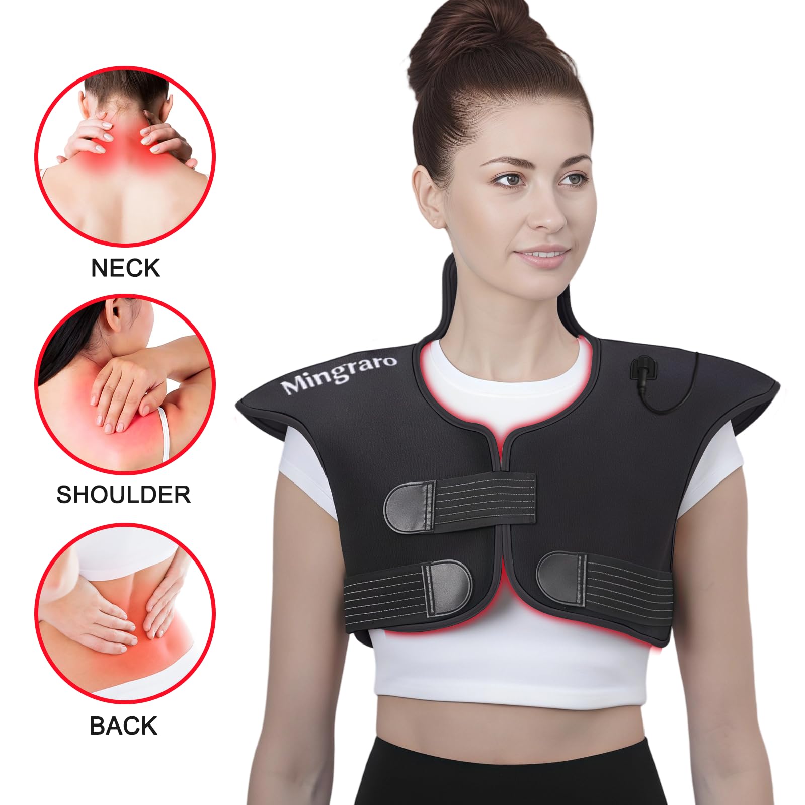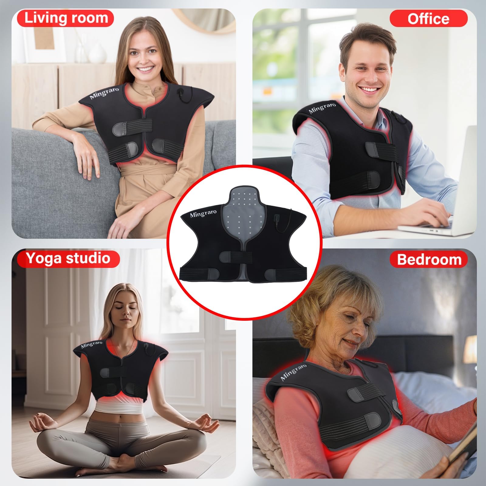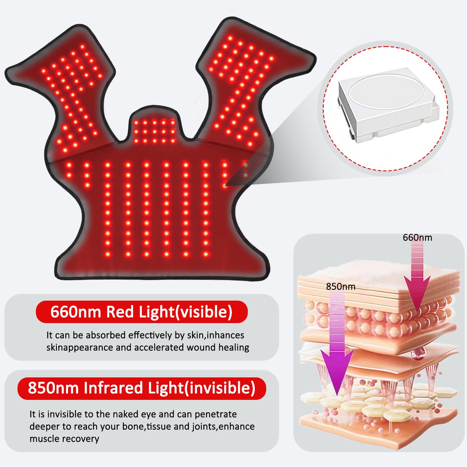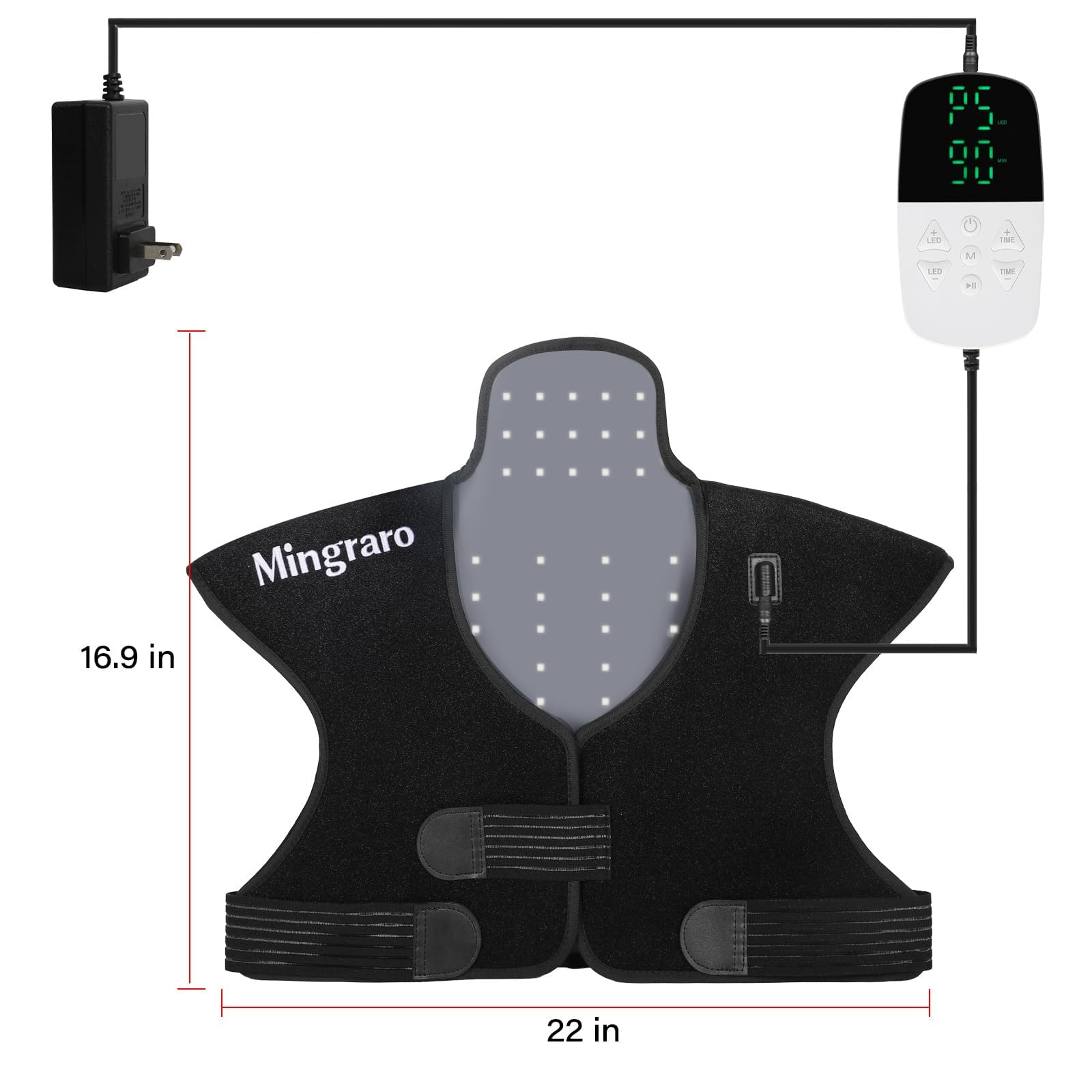 Infrared and Red Light Therapy:Mingraro red light therapy for shoulder neck ,Upgraded 3 in 1 Led beads which has total 165pcs LED chips including two wavelength clips(330pcs red 660nm(Visible) and 165pcs near-infrared 850nm lights(Invisible)) . It will be more targeting, effective and powerful on pain relief and muscle relaxation.