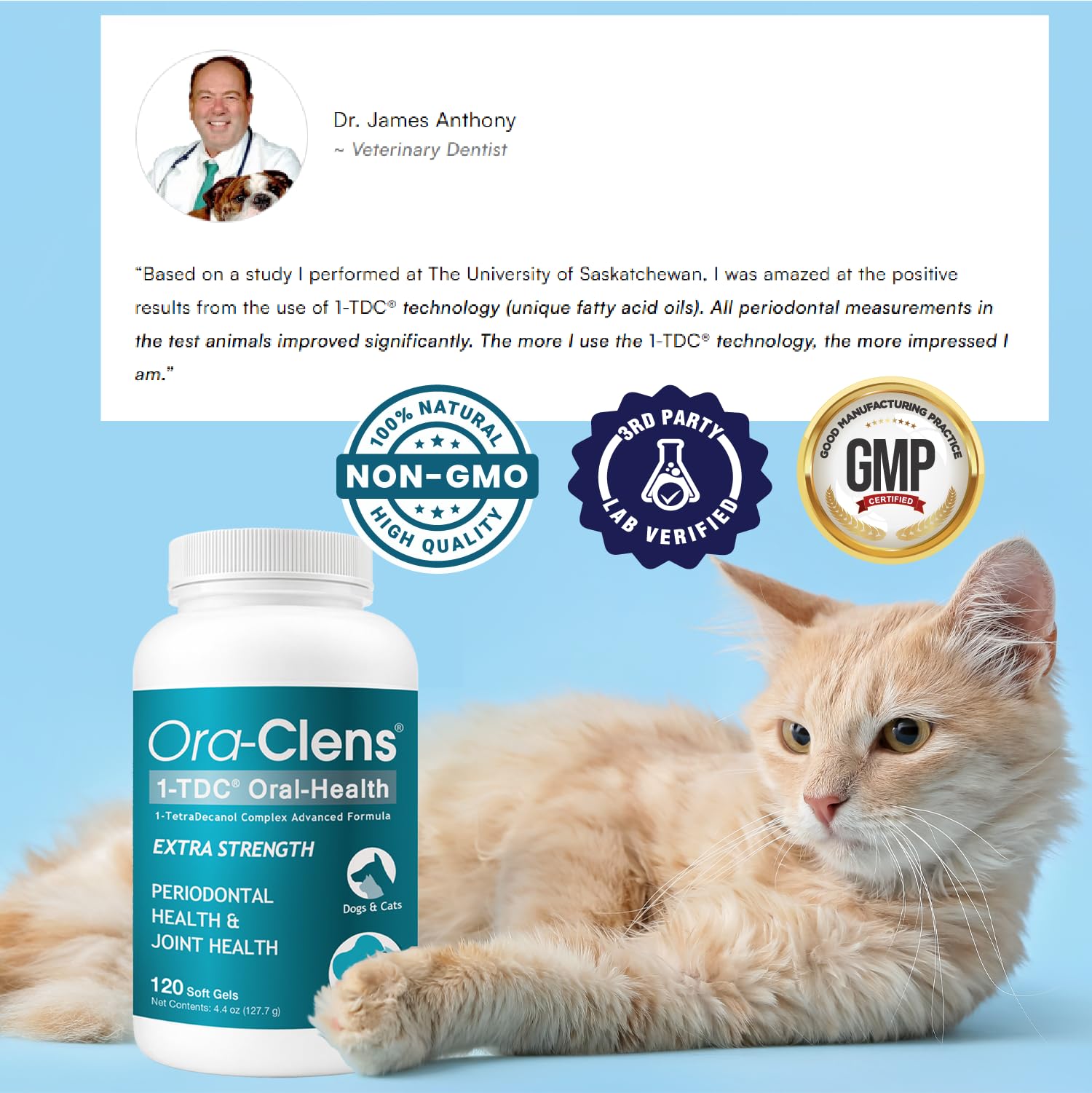 Advanced Oral Health Support: Ora-Clens 1-TDC offers superior dental care for your pets. A single softgel per day promotes healthy gums and teeth.