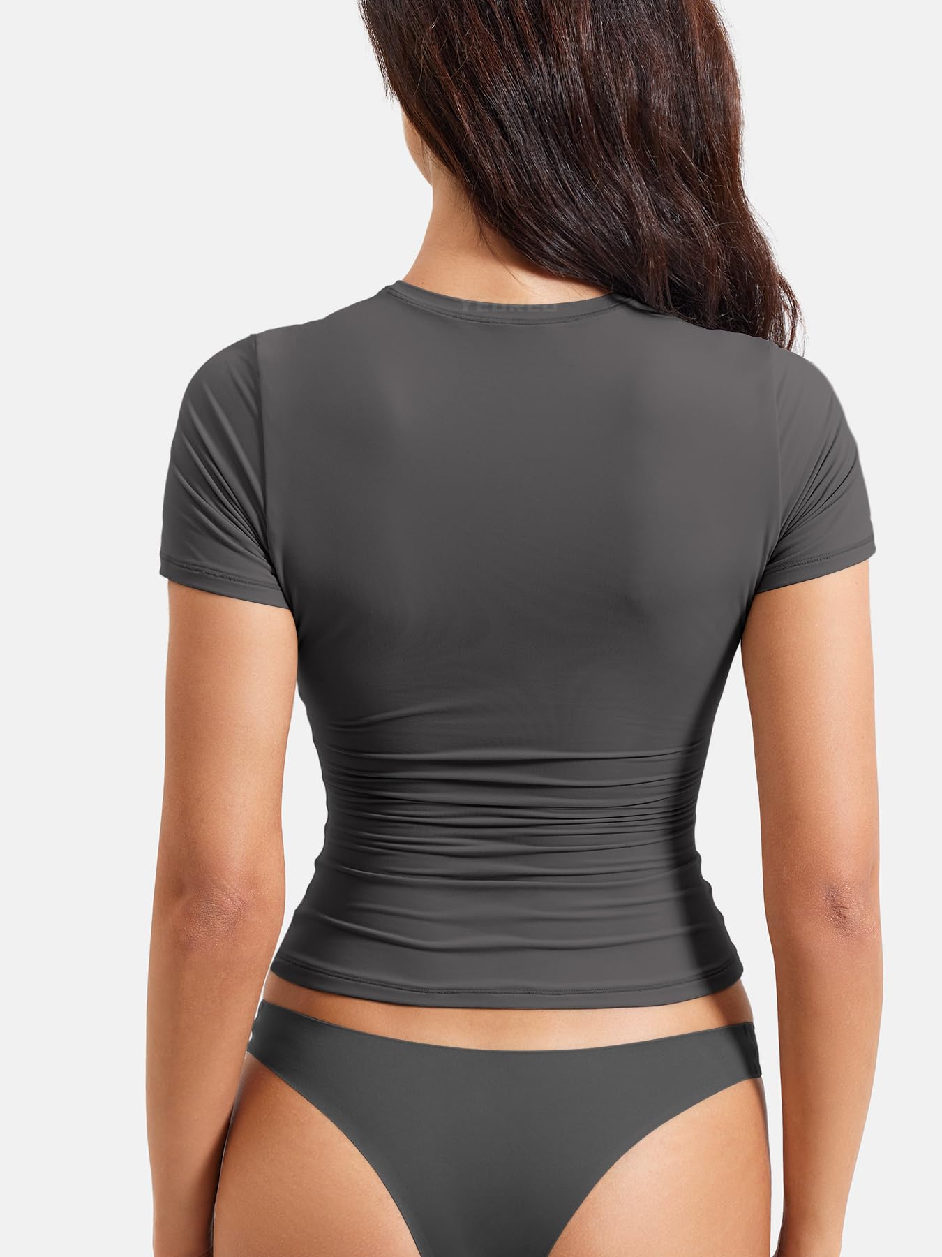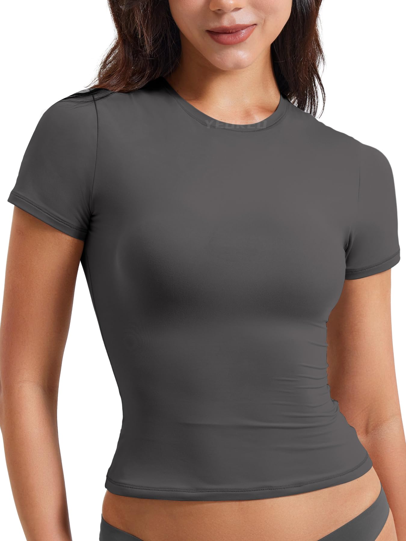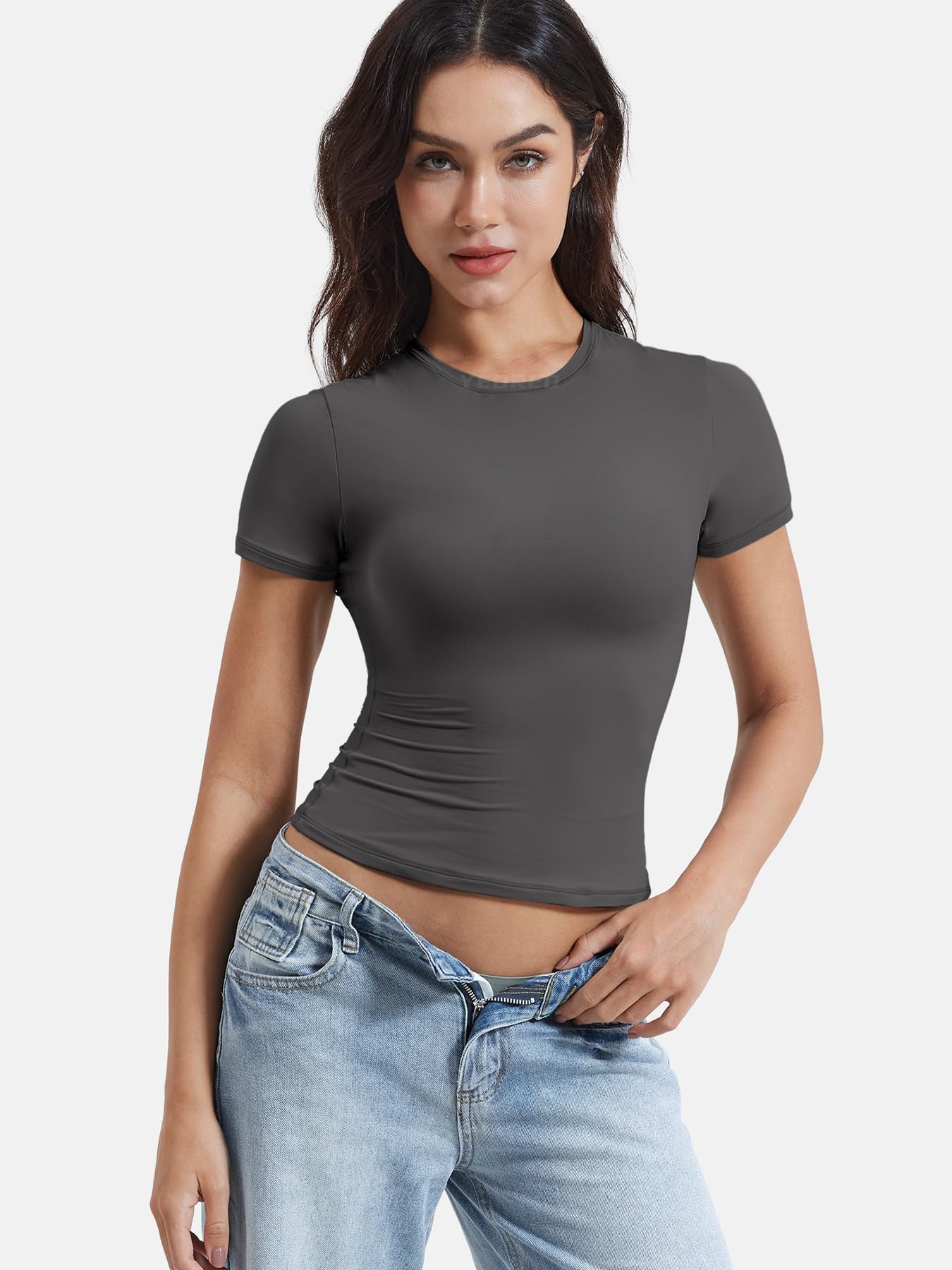 Fahion Basic top - Fitted gym tops with a crew neck fit and buttery soft feel