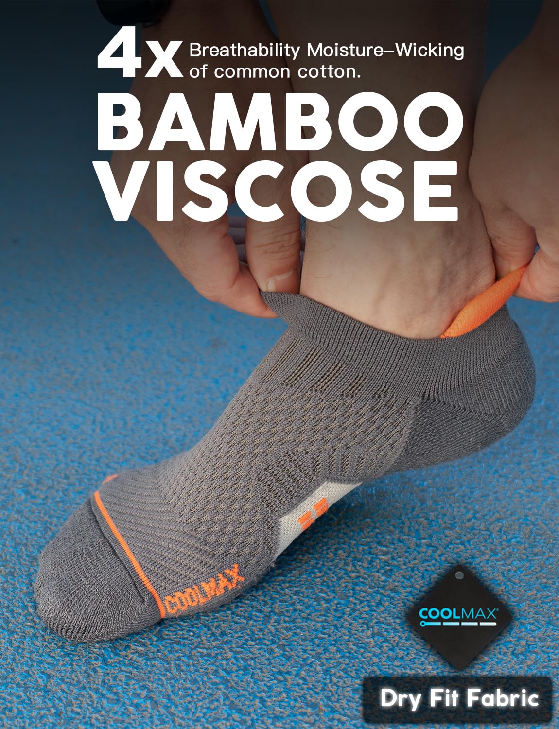 【Advanced COOLMAX & Organic Bamboo viscose Blend】: Keep your feet dry and fresh with our running socks! The COOLMAX fabric quickly wicks away sweat, while organic bamboo viscose helps minimize odors and keeps your socks feeling clean. Enjoy superior comfort and freshness with this innovative sock technology!
