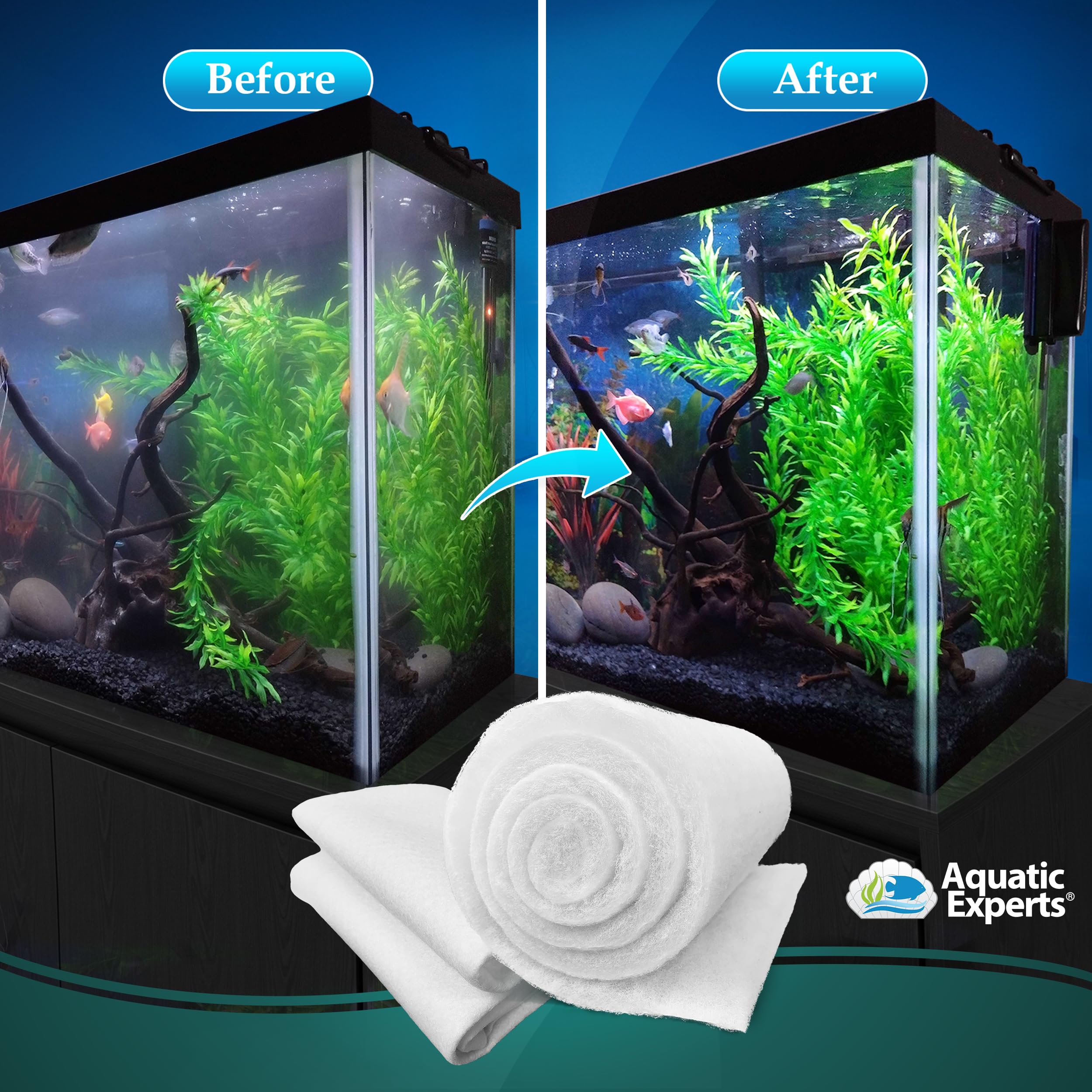 2 LAYERS EQUALS CLEAR WATER: This unique 2 Layers in 1 filter media pad combines a typical aquarium filter pad with a water polishing pad. The top layer’s open fiber construction traps LARGER PARTICLES while the bottom layer's dense fiber network TRAPS FINER PARTICLES, working together to produce clean, clear water in your aquarium.