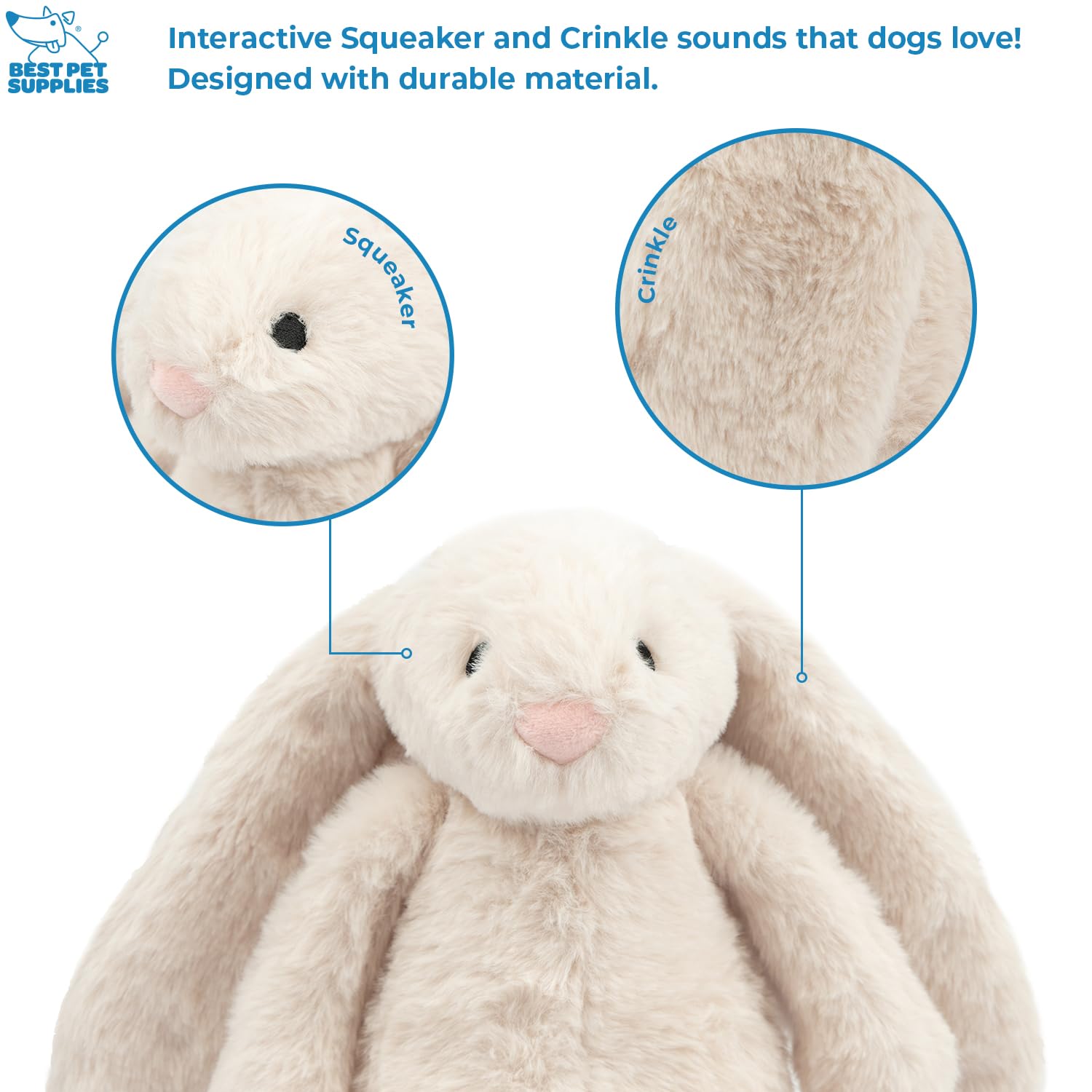 Engaging Squeaky or Crinkle Sounds – Our cute dog chew toys come in squeaky dog toy and crinkle dog toy options to better suit your pet’s needs. They’ll love the crinkly sounds in our ducks and rabbits, and the squeakers in all three different animals.