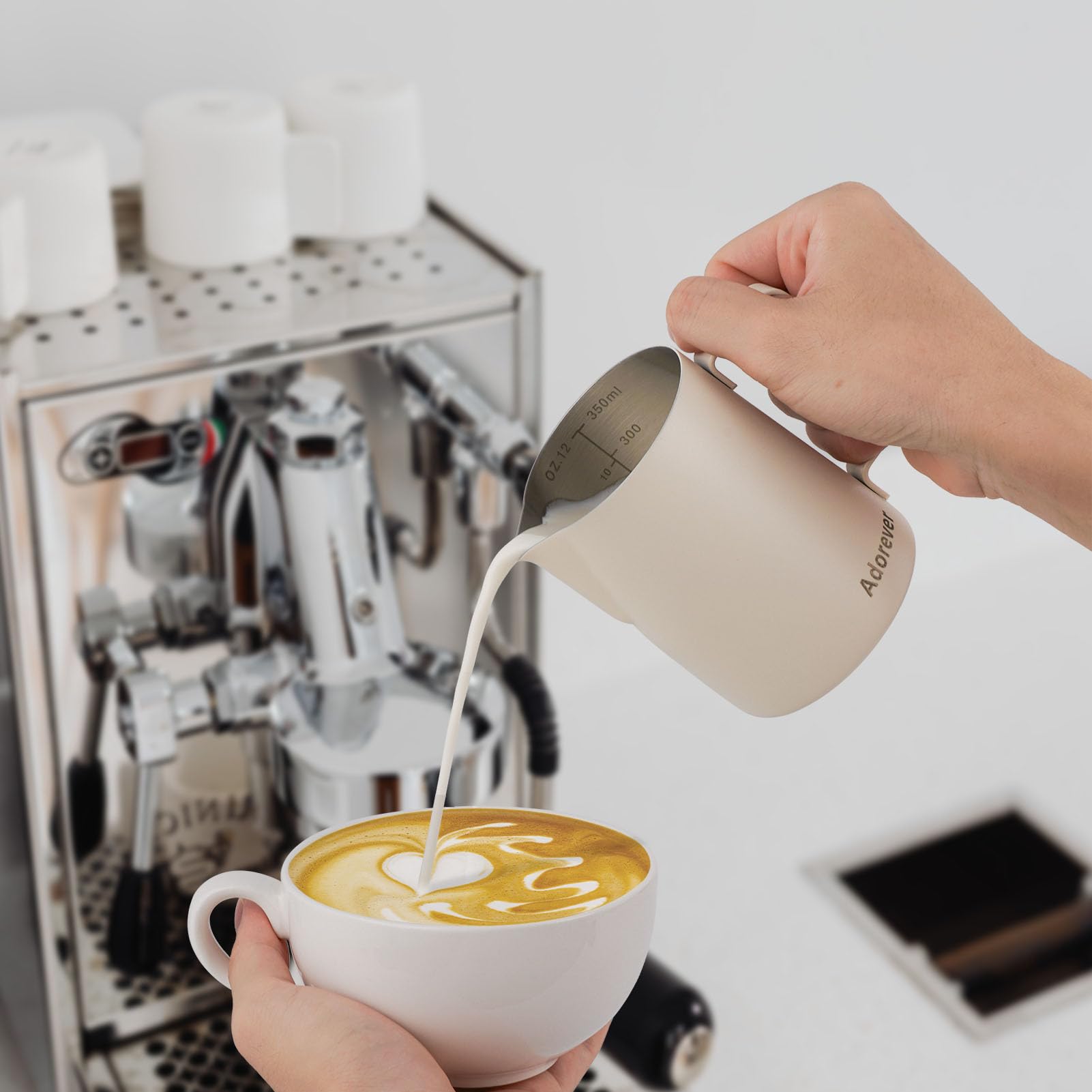 Perfect Combination of Milk Frothing Pitcher And Latte Art Pen: The milk frother jug can be used in different ways: froth or steam milk for lattes; measure liquids; serve milk or cream. Featured with a latte art pen which can shape kinds of beautiful coffee pattern. Perfect for making frothing or steaming milk for espresso, cappuccino or hot chocolate. Be your own barista in home and office.