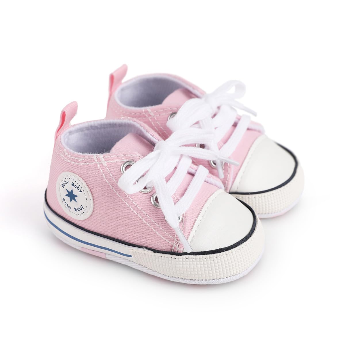 【Quality】-- Safety Tested for Peace Of Mind, and look aesthetic,No Any Stimulation to The Skin of Baby.This baby sneakers are made of high quality soft and breathable canvas upper, which is very good for baby's feet growth in crib.