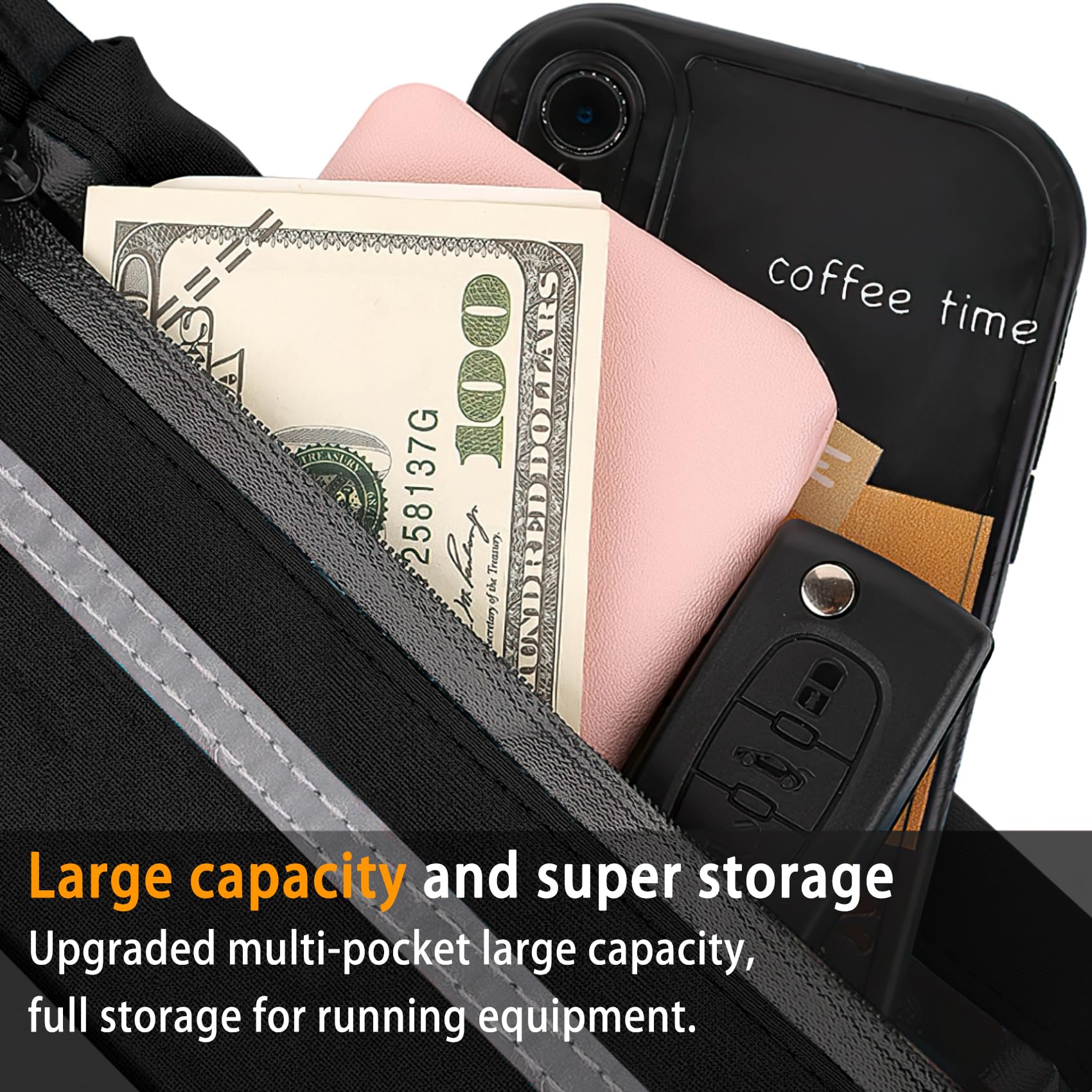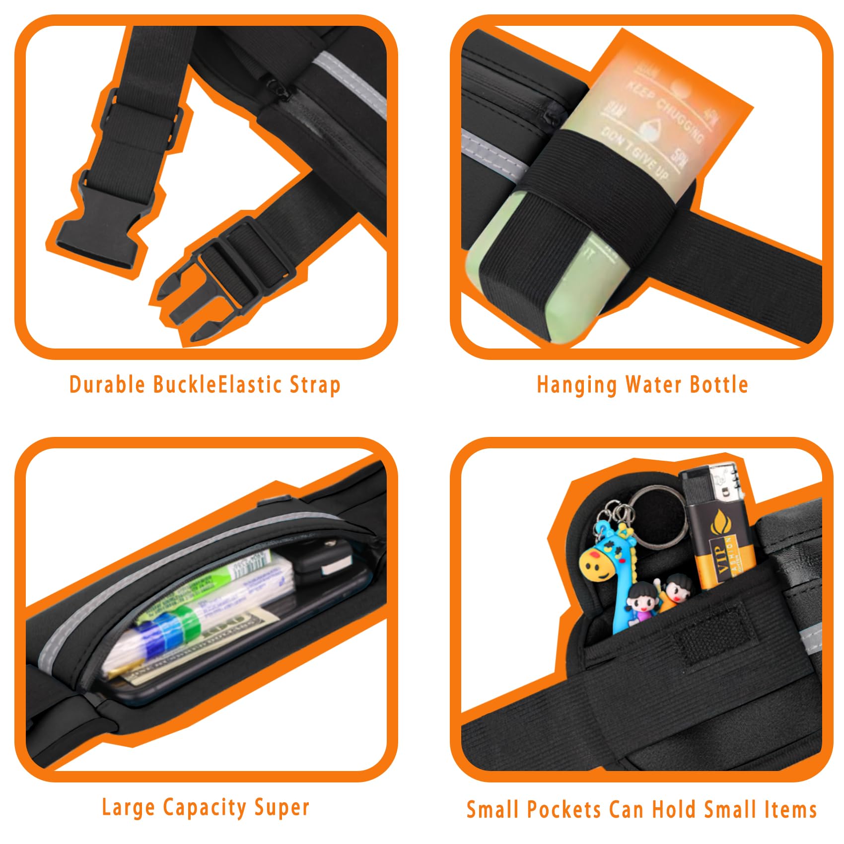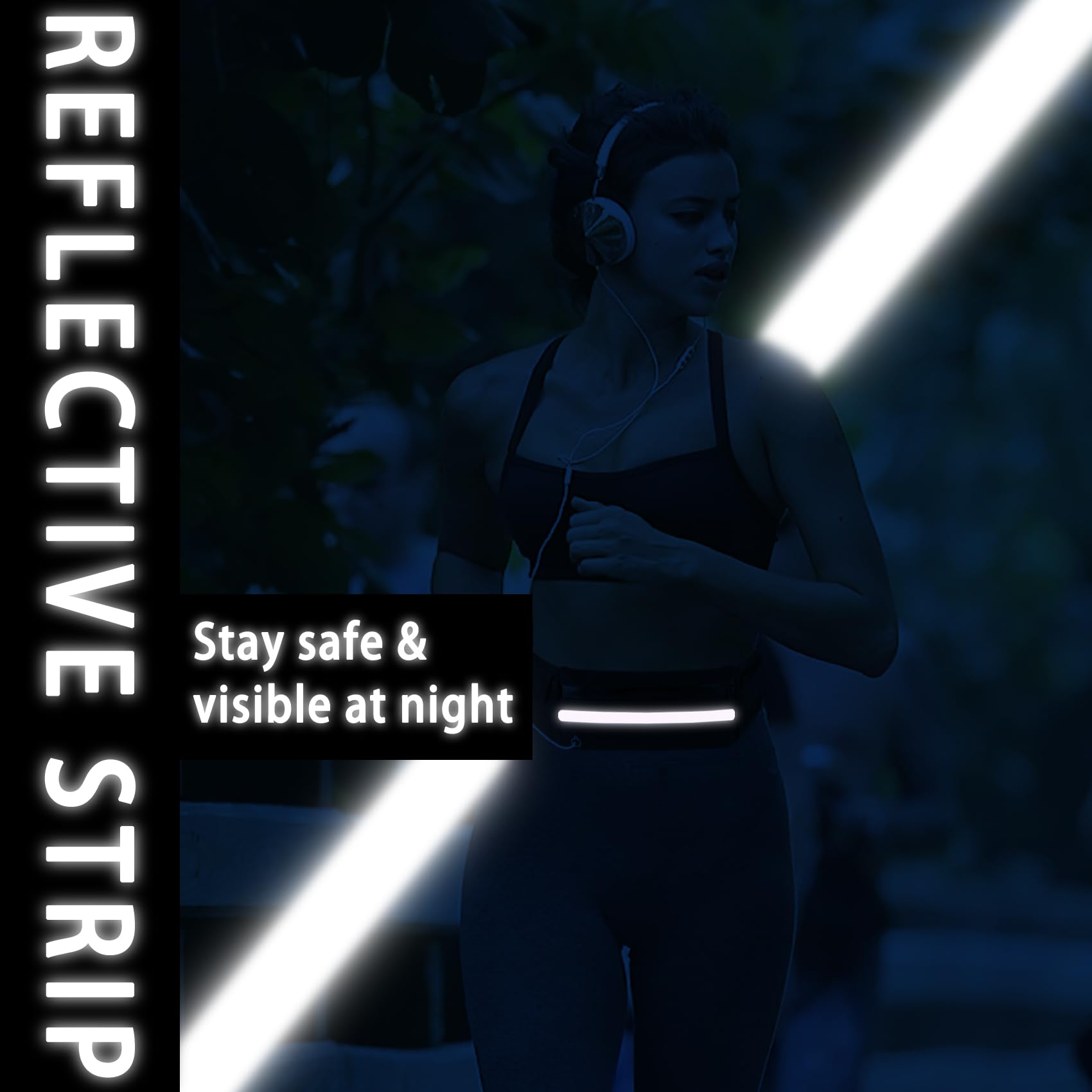 【REFLECTIVE 】: Reflective Running fanny pack with two highly reflective strips ,makes sure that you are safe even when running at night or in low-light conditions!