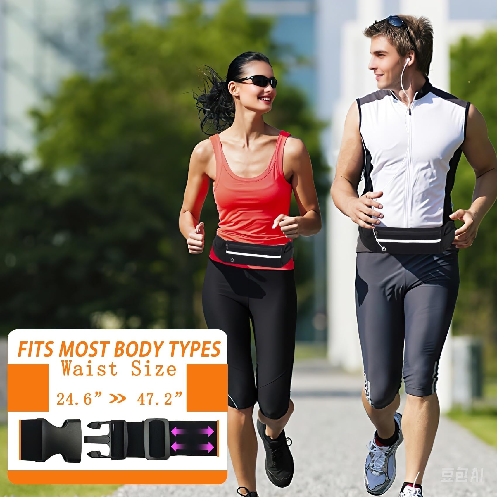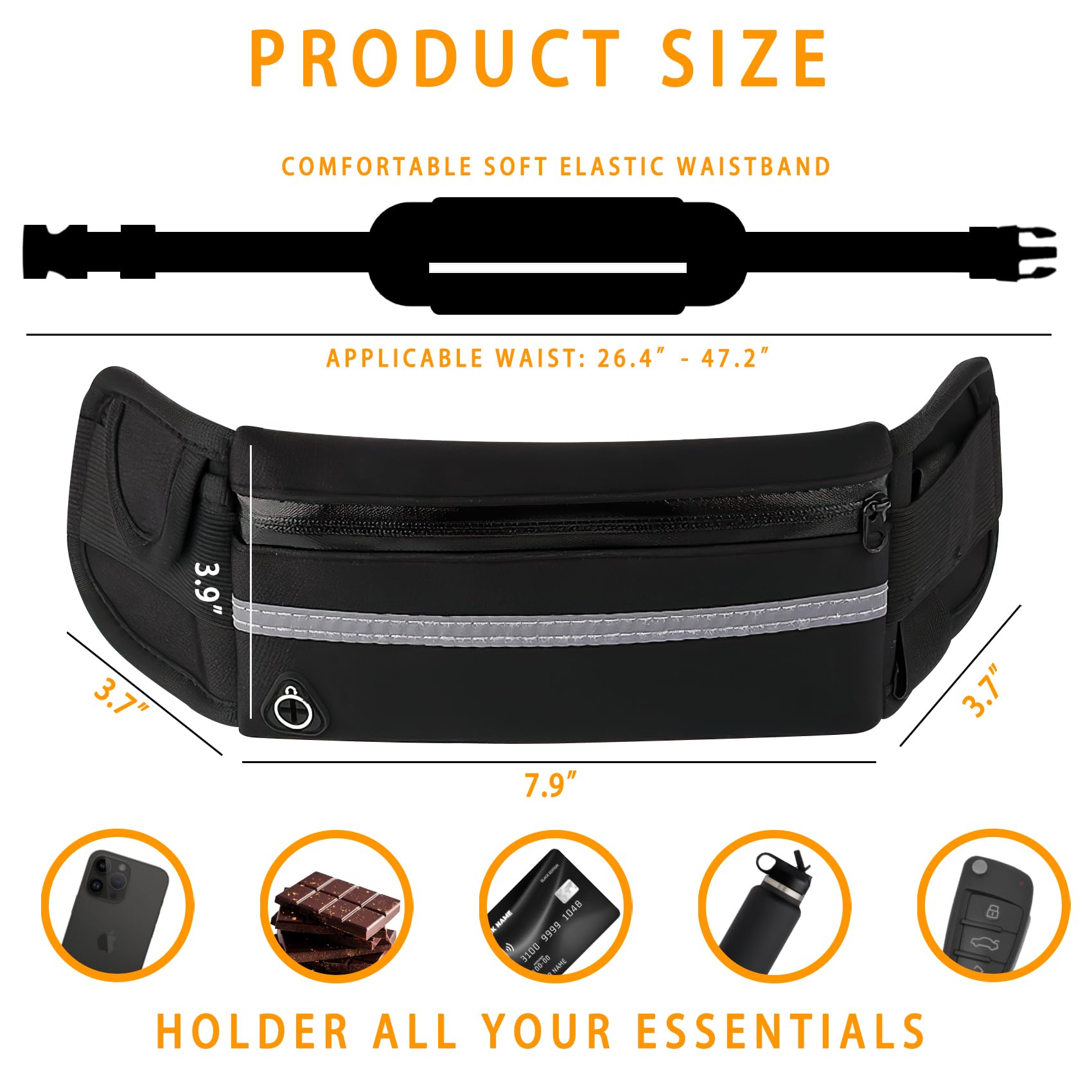 【Adjustable Waist Strap】: Running waist belt fits waist sizes from 26.4" to 47.2" with adjustable elastic strap, Prevents bouncing around while you running, jogging, walking etc.