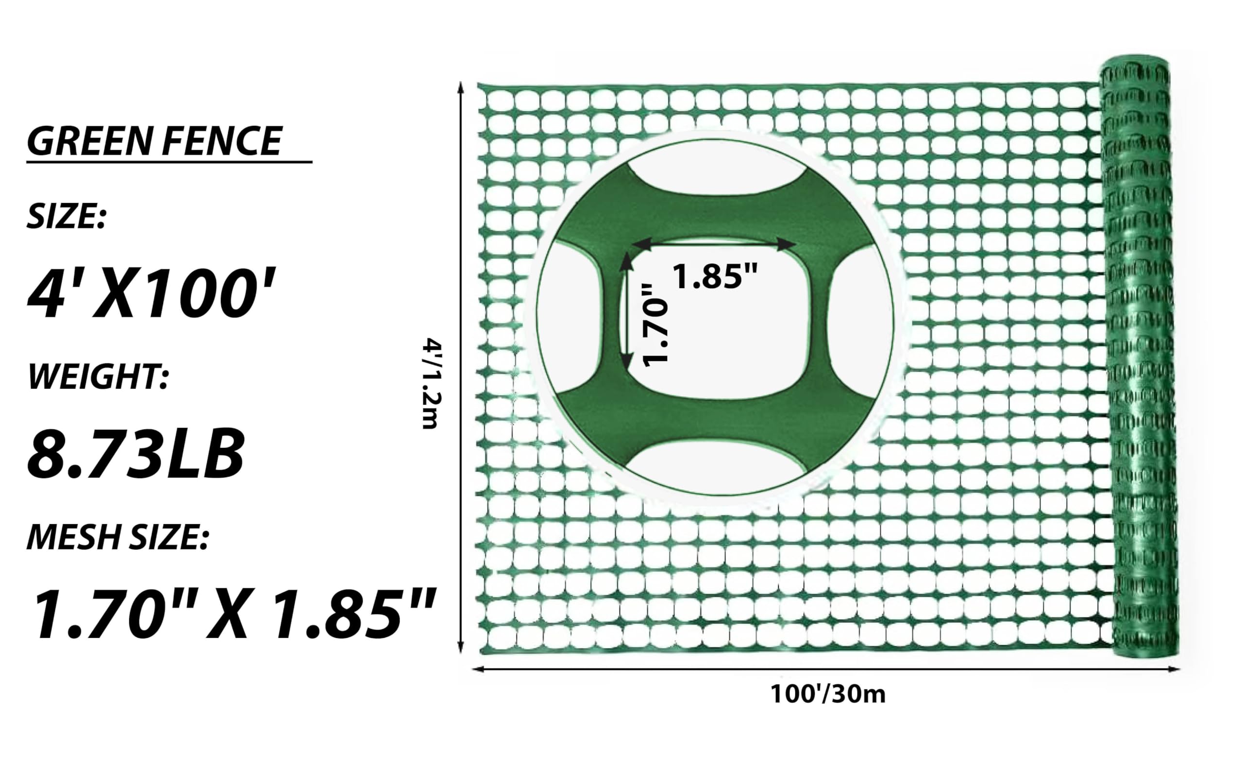 Convenient Combo Set: Our product package consists of a 4' x 100' (1.2m x 30m) mesh fencing roll that weighs 8.73 lbs. You'll also receive 100 zip ties to easily secure the PotatoLife Fence to any object, and 1 pair of gloves to make installation safe and comfortable. Posts are not included. If you encounter any issues with the product, please feel free to contact us. Our team is always available to assist you.