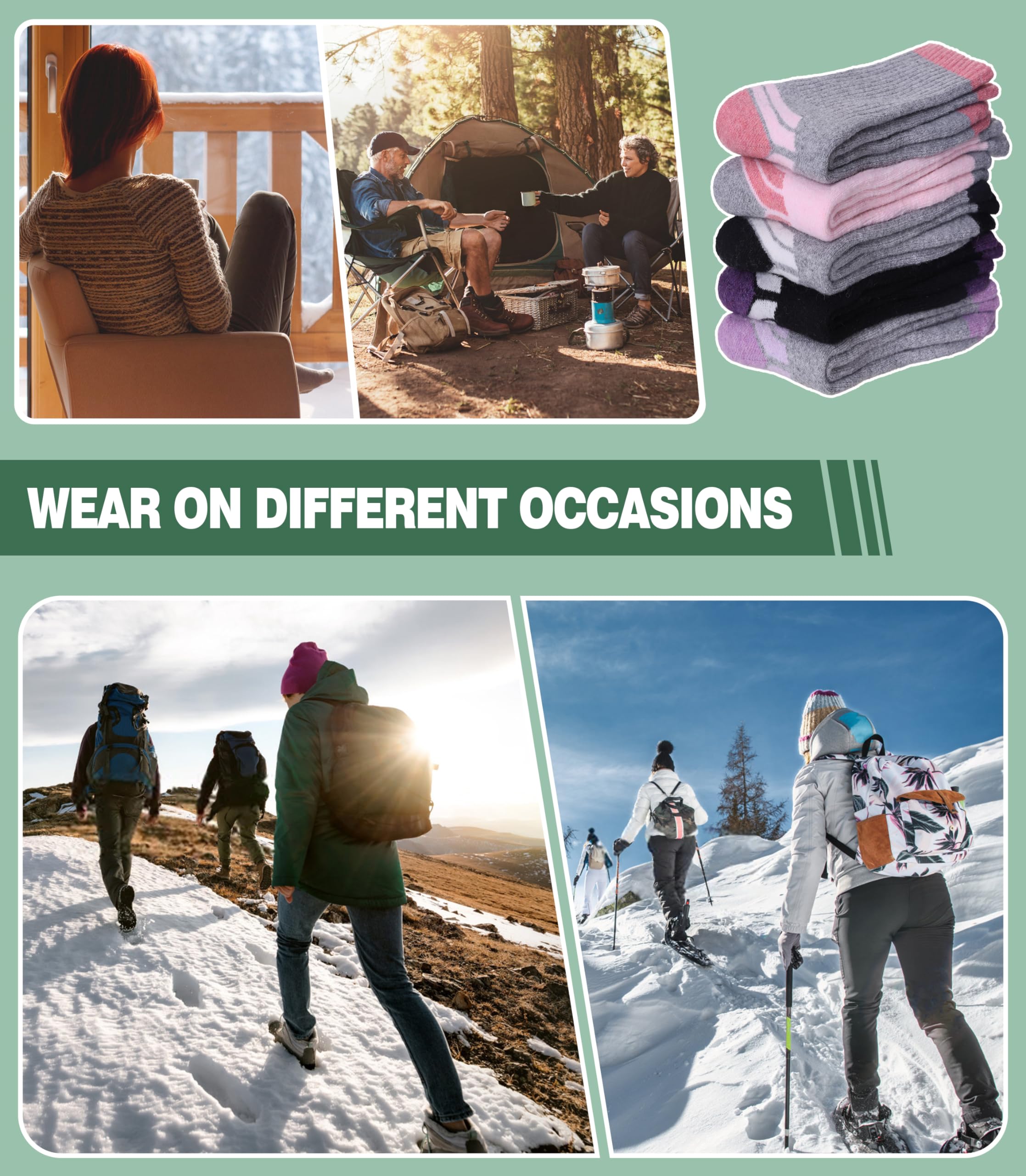 MULTI-FUNCTION - The wool socks for women are suitable for different situation, you can wear them as house socks, office socks, school socks, hiking socks, christmas socks in spring, fall, winter season or in any cold weather areas.