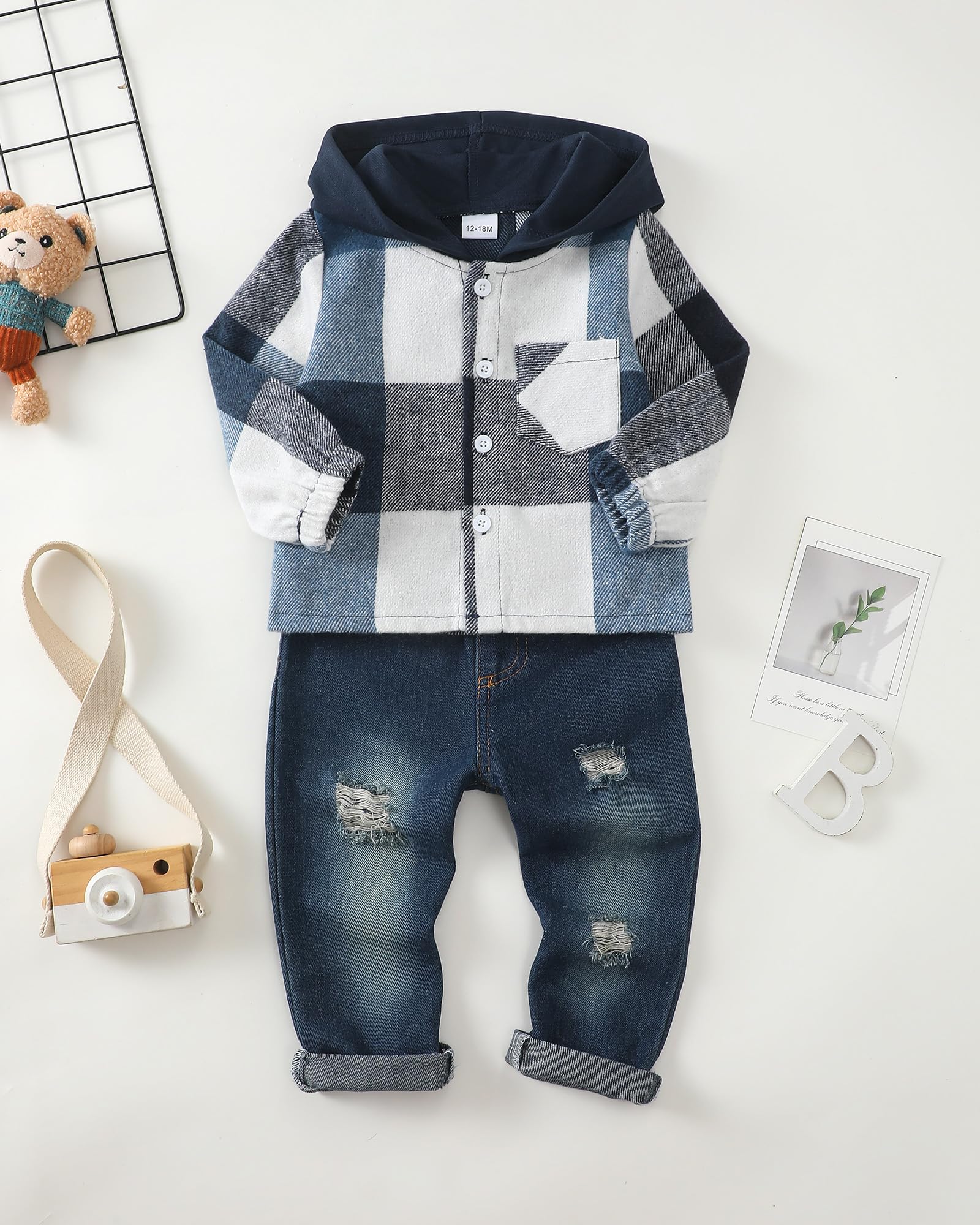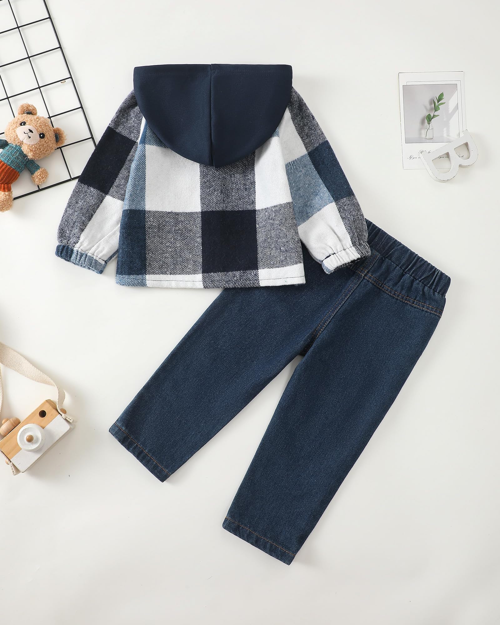 Stylish Plaid Design: This toddler fall winter clothing set features a classic plaid flannel design paired with a cozy hooded jacket, offering a perfect blend of style and functionality. The jacket includes button details and front pockets, adding extra practicality while enhancing the overall lively, modern look.