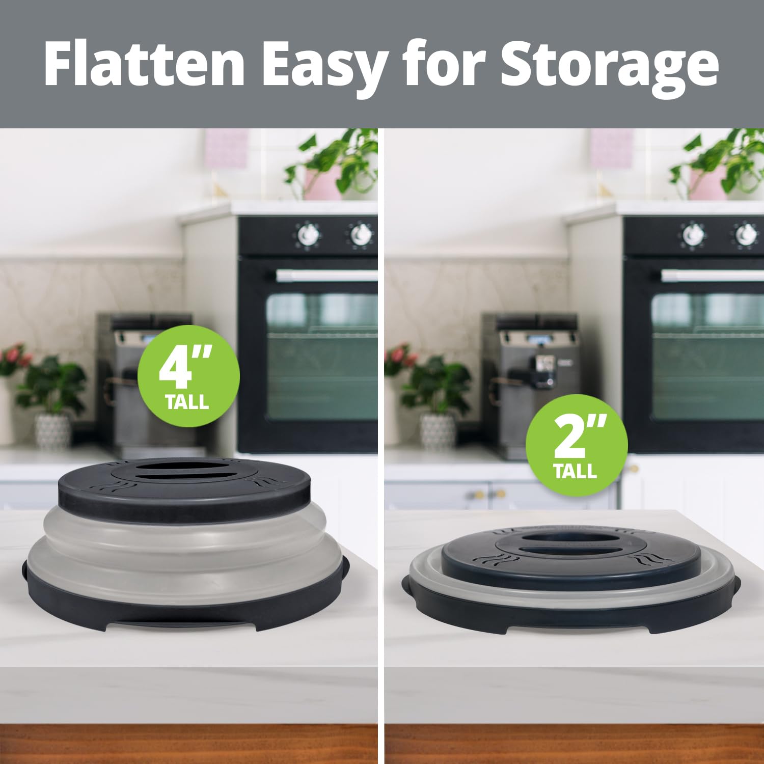 COLLAPSIBLE & MAGNETIC STORAGE: The HOVER COVER 2.0 Microwave Splatter Cover measures 12 x 12 x 4.00 inches and features New Higher Power microwave-safe magnets that securely attach to the microwave ceiling for convenient, space-saving storage. It easily expands to fit tall bowls or shallow plates, providing optimal coverage for mess-free heating.