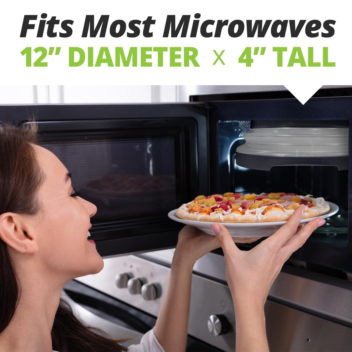PLEASE CHECK BEFORE ORDERING - Designed to work with standard microwaves, microwave-safe plates and bowls. To avoid returns, watch our Pre-Order Compatibility Video. After watching, check your microwave for a flat metal ceiling or use a magnet to ensure the magnetic microwave dish cover will stick. NOTE: this specific model of HOVER COVER measures 12 x 12 x 4.00 inches. Compatibility is based on typical model features and may vary. Please verify your microwave’s interior before purchase to ensure a proper fit.