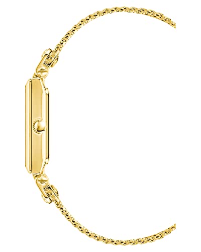 Description This rectangular watch boasts a mineral crystal lens and a sleek, rectangular case. Its dial showcases indexes and an inner minute track. The mesh bracelet is equipped with adjustable end links, a jewelry clasp, and an extender. Notably, it is not water resistant.