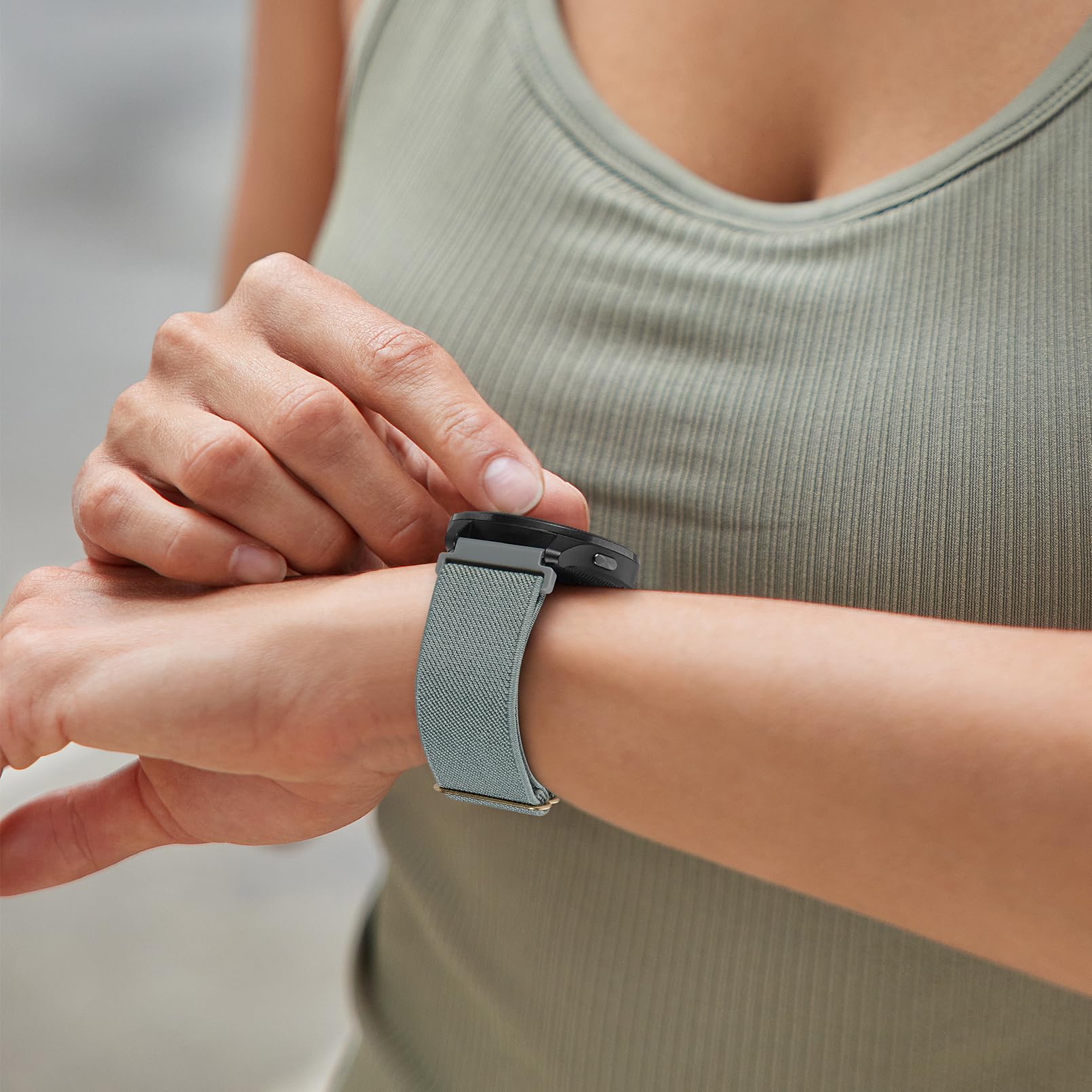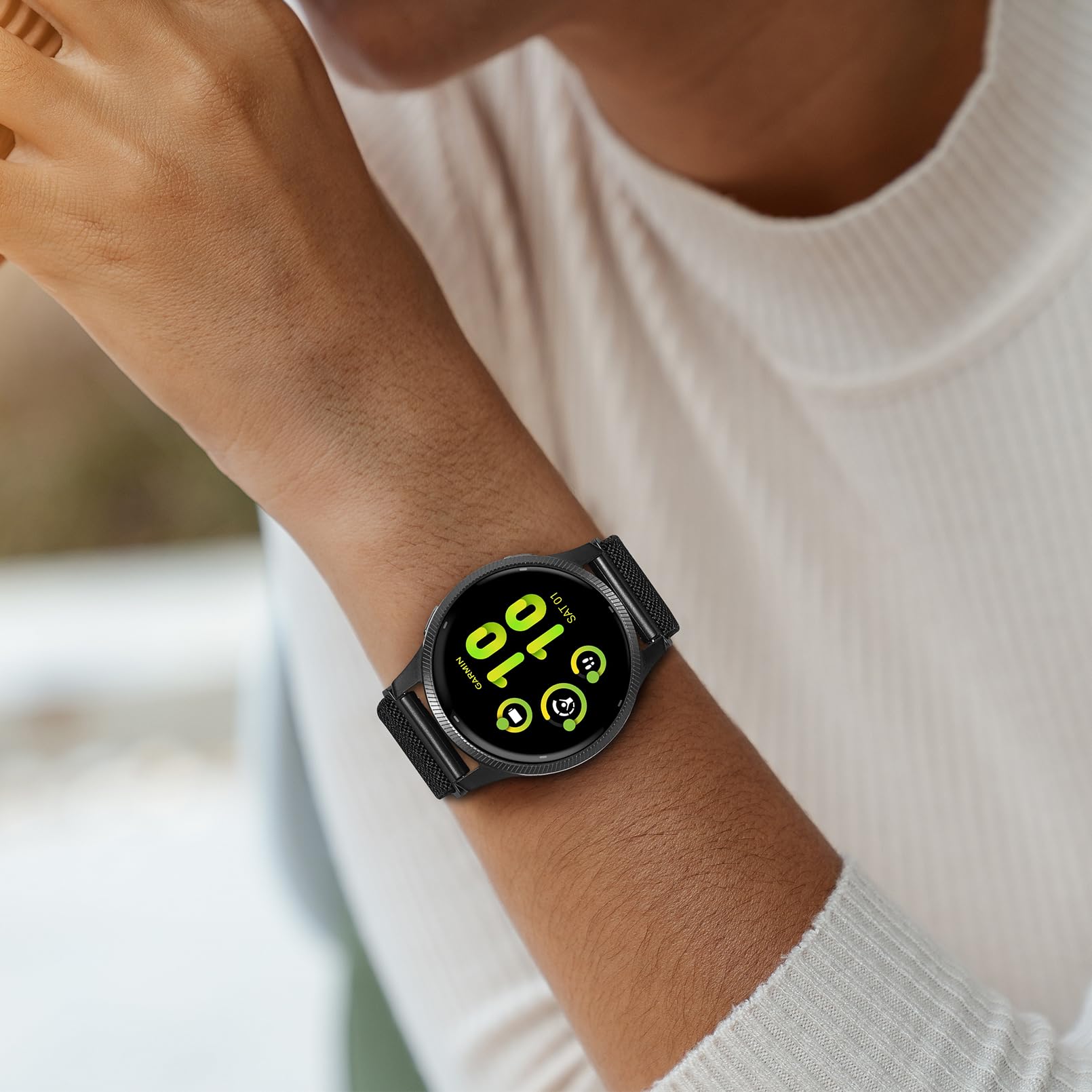 【Compatible Models】The 20mm stretchy fabric wristbands compatible with Garmin Venu sq 2/Sq/Venu/Venu 2 Plus,Forerunner 55/165/645/245/570 42mm,Vivoactive 5/6/3 Music,Approach S50/S44/S42/S40/S12,Vivomove HR/Trend/Luxe /Style.NOTE:Please check the model by looking at backside ot your watch before buy it.Also determine the size of the watch band(20mm) to be used by measuring the distance between 2 lugs of the watch face
