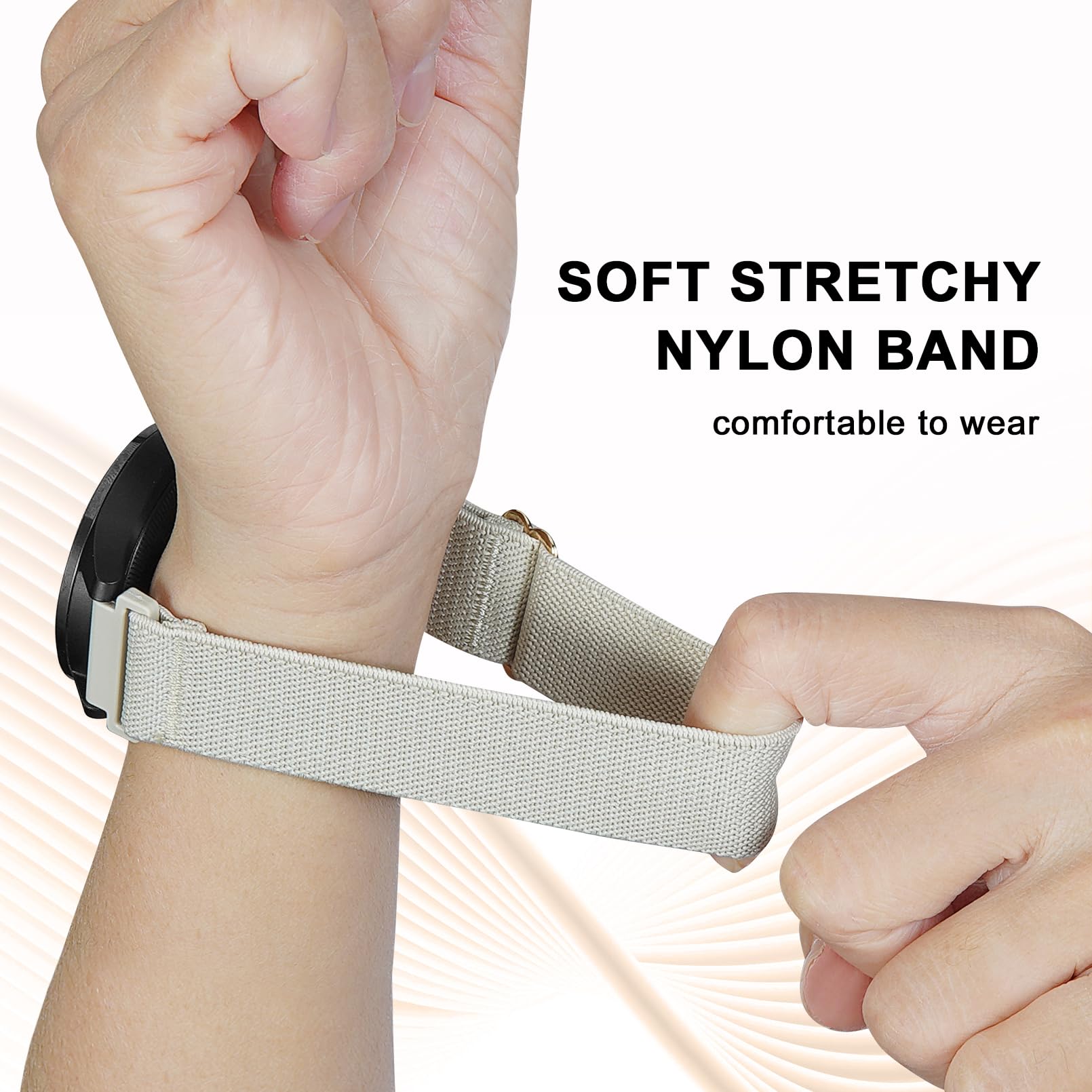 【Easy Adjustable】Fits 6.3”-9.5” (158mm-240mm) wrists.Easily adjust the length of the band through the metal buckle.(NOTE:If your wrist is close to the minimum size,please think it over before purchasing,because the elasticity of the nylon band will become less good after being used for a long time.)