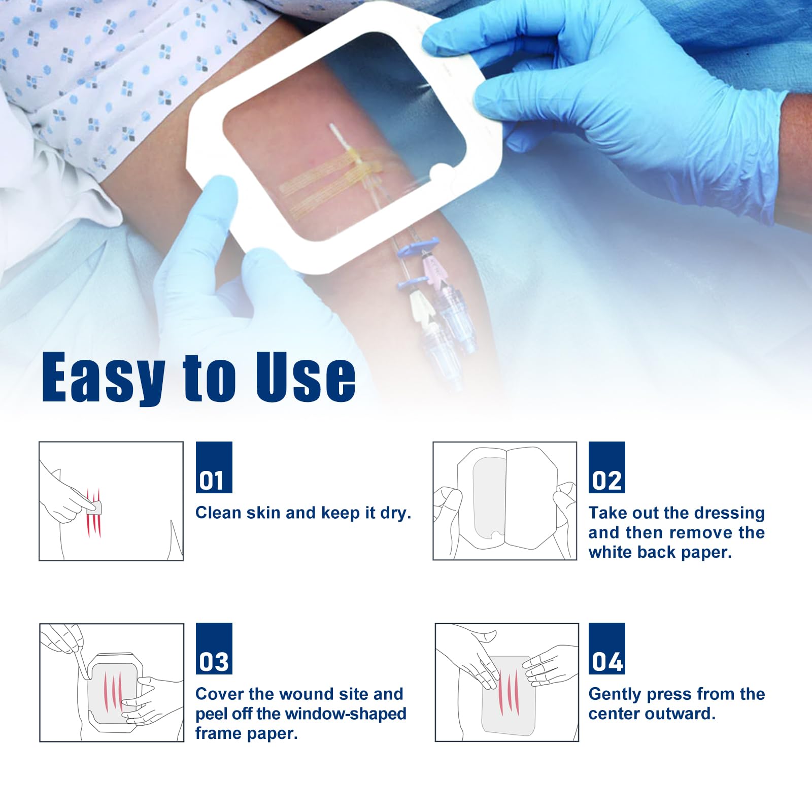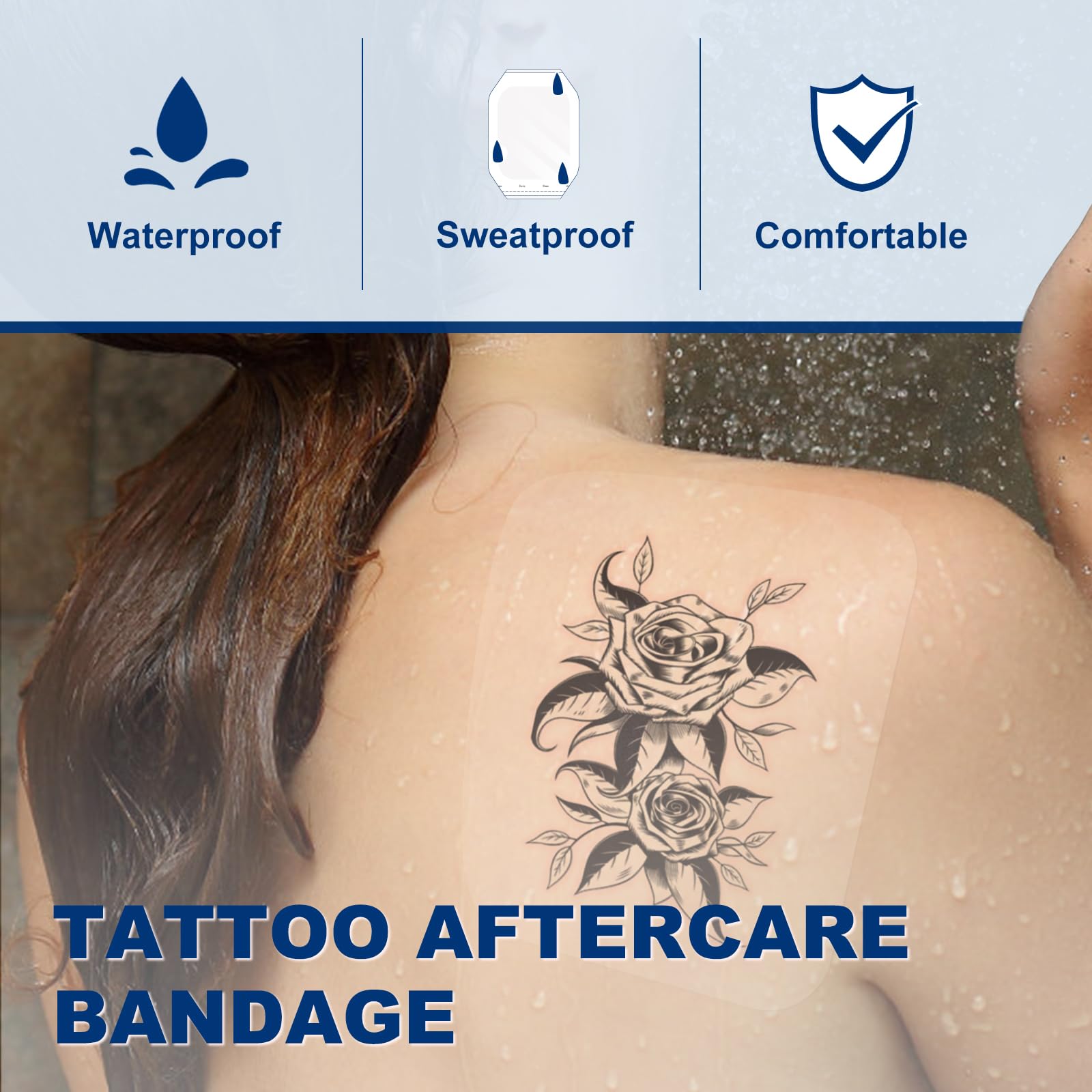 【Waterproof and Breathable】Excellent waterproof performance is impermeable to liquids, forming a protective barrier for the wound. Allowable for quick & short showerproof, is not easy to fall off, but not for a long periods of immersion bath & showerproof. Highly breathable to allow skin to breathe and provides excellent wound care.