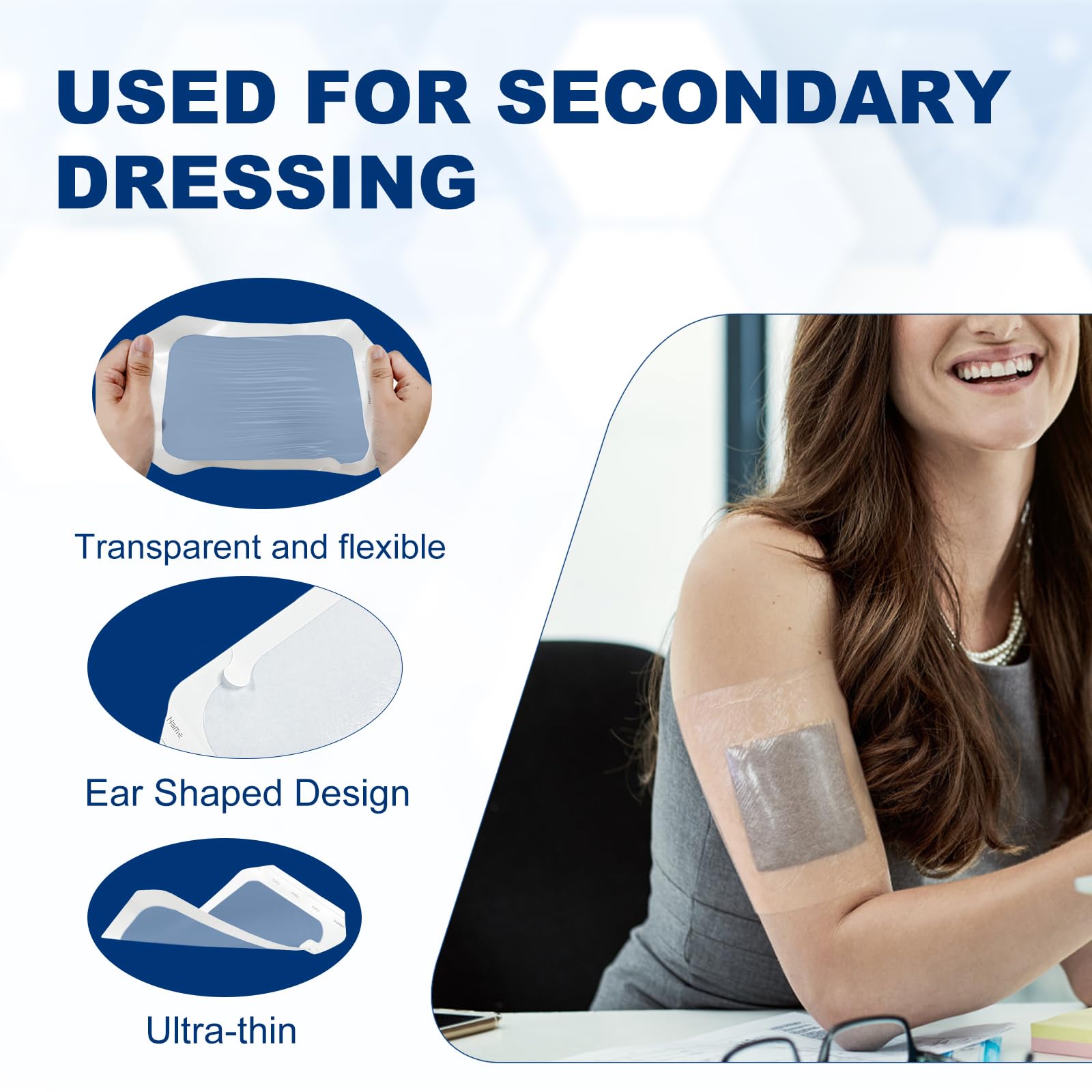 【Flexible and Transparent】Transparent bandages are highly elastic, thin, soft and comfortable, with good adhesion, which can closely adhere to the skin contour and allowing to move freely. Clear waterproof bandages are clear to easily watch your wound site or device that doesn't have to be removed.