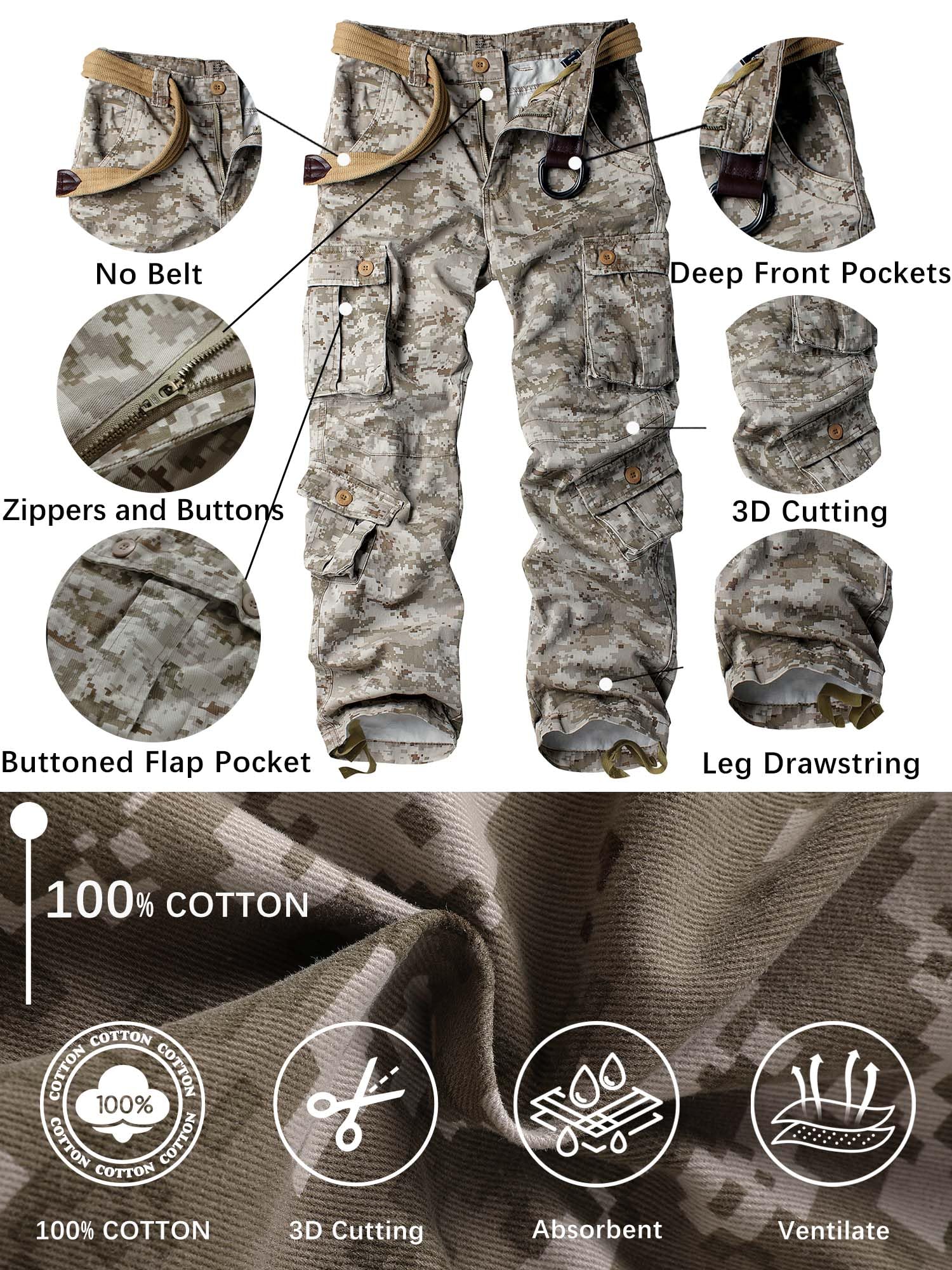 Product Material:This cargo pants for men use 100% cotton fabric, treated for ease of care with a wrinkle-resistant finish and durability,which is soft,breathable and sweat-absorbent,durable and tough,can repel the stains, liquids and soil keep you all day dry and clean.