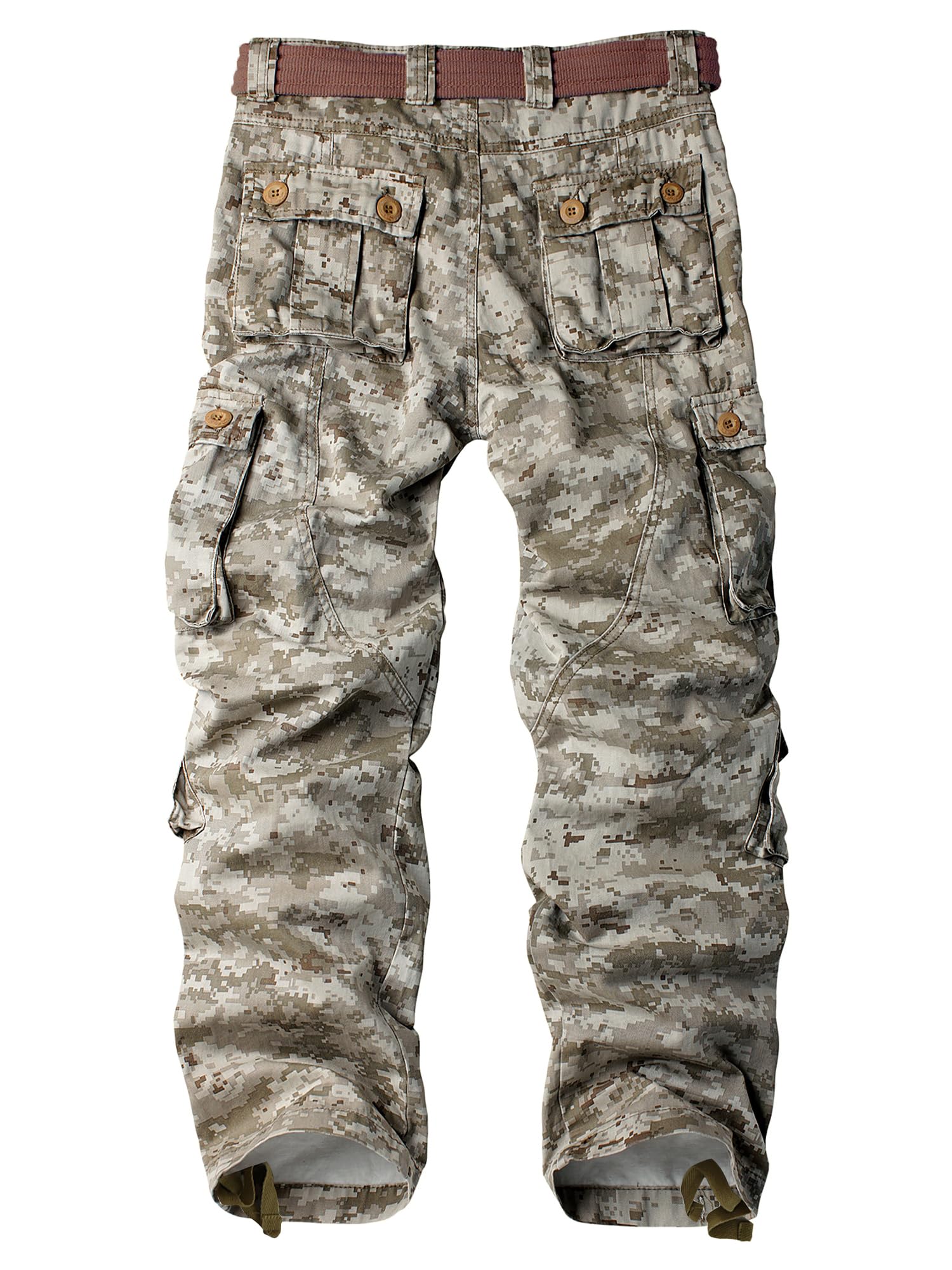 Product Features:Men's casual wild pants features straight leg openings with drawstring tie to fit with boots, can adjust the opening of hem prevent wind, prevent trees from being scratched and make outdoor activeities more convenience.Also,this versatile, relaxed fit,camo cargo pants for men sits at waist ,straight leg openings with drawstring tie to fit with boots are great for hunting pants, working pants, military style BDUs, costume pants.