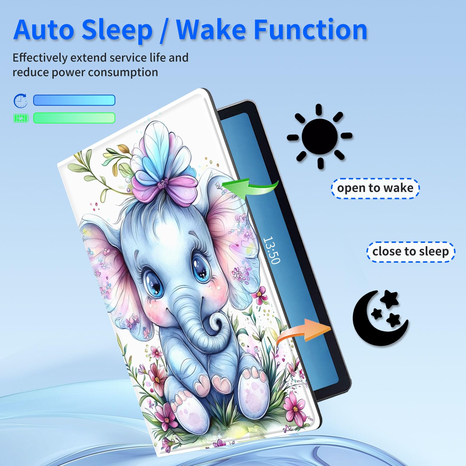 SMART AUTO SLEEP/WAKE & BATTERY SAVER:Protect for your Samsung Galaxy Tab A9 Plus with the built-in auto sleep/wake feature. Open the cover to wake your device, close it to save power. for This Galaxy Tab A9 Plus case extends battery life effortlessly.