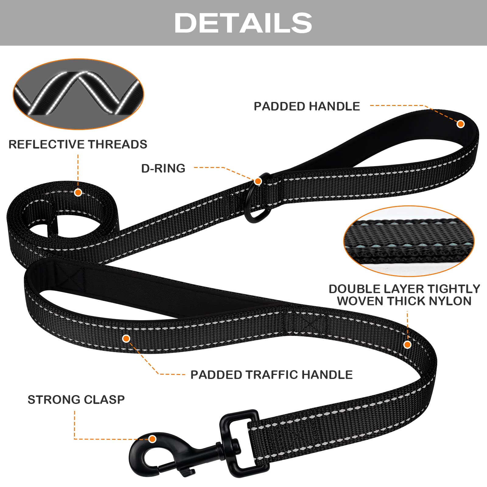 Double-Sided Reflective for Night Safety: The upgraded double-sided reflective leash has reflective stitching on both sides, which is much safer than the dog leash without reflective threading and a single-sided reflective leash. Luminous reflective threading keeps you and your dog safe and visible at night