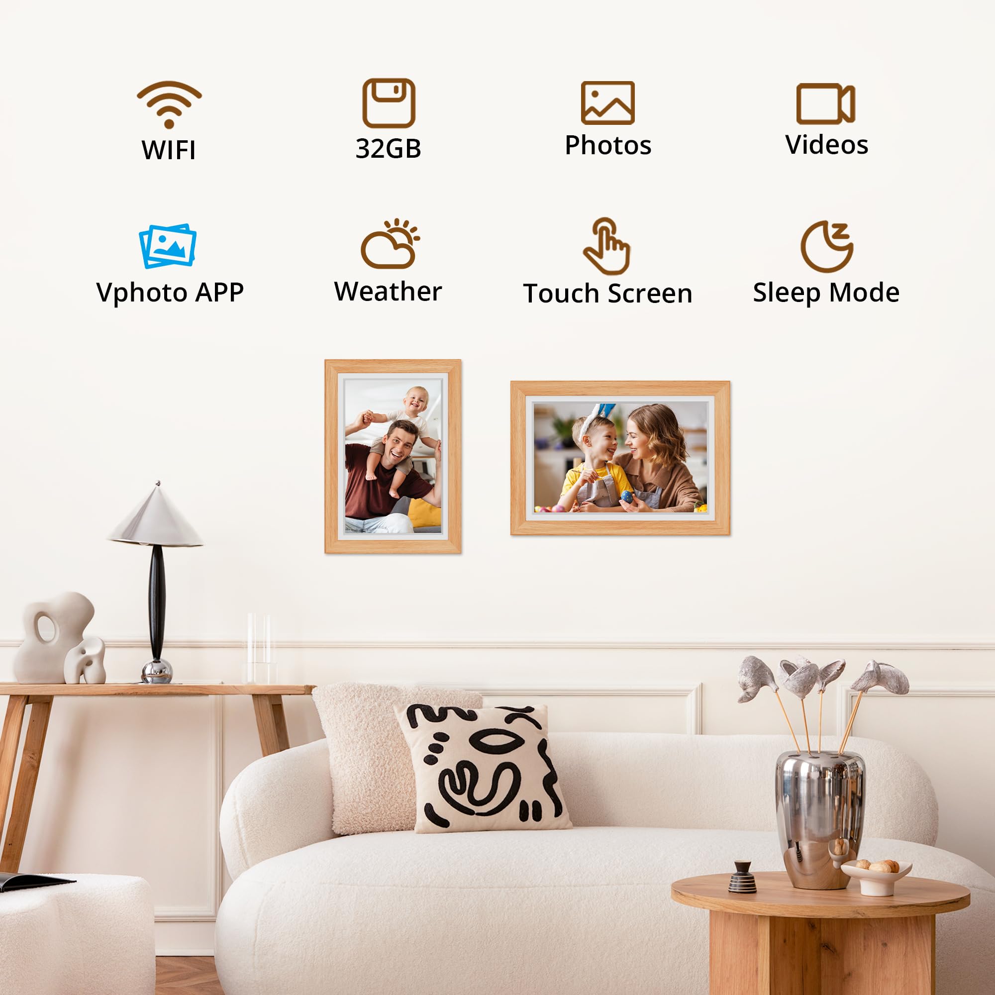 WONDERFUL PICTURE DISPLAY: A high-quality 10.1'' touch screen display with 1280*800 resolution and 16: 10 aspect ratio recalls your precious memories. Customized sleep mode and auto-rotate setting support your better viewing experience, you can place this frame in either portrait or landscape mode, or even mount it on the wall.