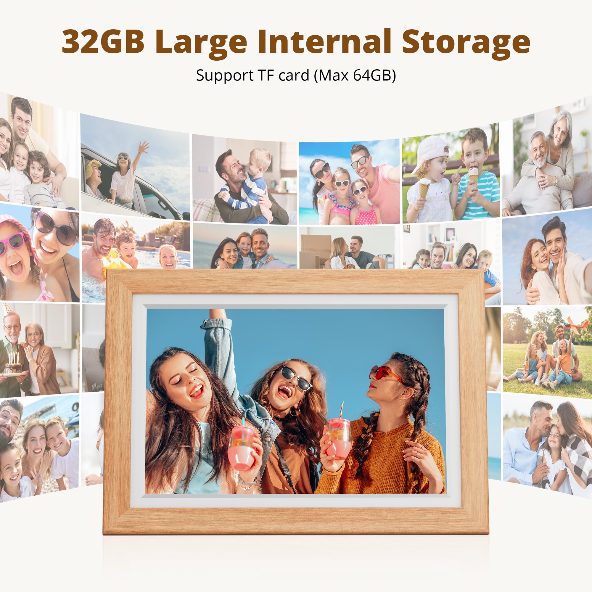 OVER 80,000 PHOTOS STORED: This frame offers you a huge storage capacity with built-in 32GB memory (around 80,000 photos). It also supports the SD card and USB drive connectivity to enable you to read the files and export the received photos and videos for better album management (note: please remove all your external devices when you reset the photo frame)