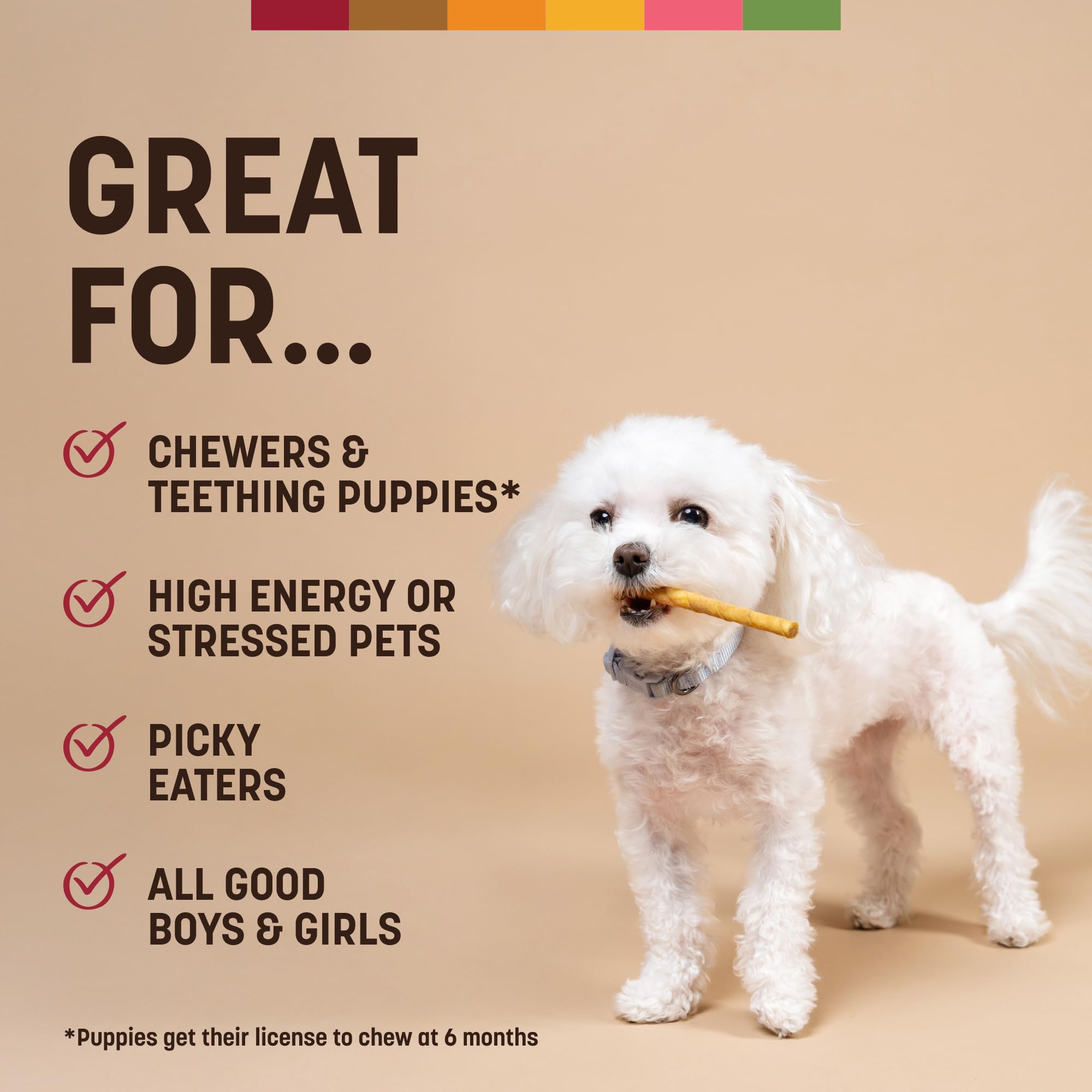 PERFECT FOR EXTRA SMALL DOGS & CATS: Just the right size for animals under 10 lbs, these 80-piece all natural No-Hide Stix deliver a delicious, long-lasting chewable bliss.