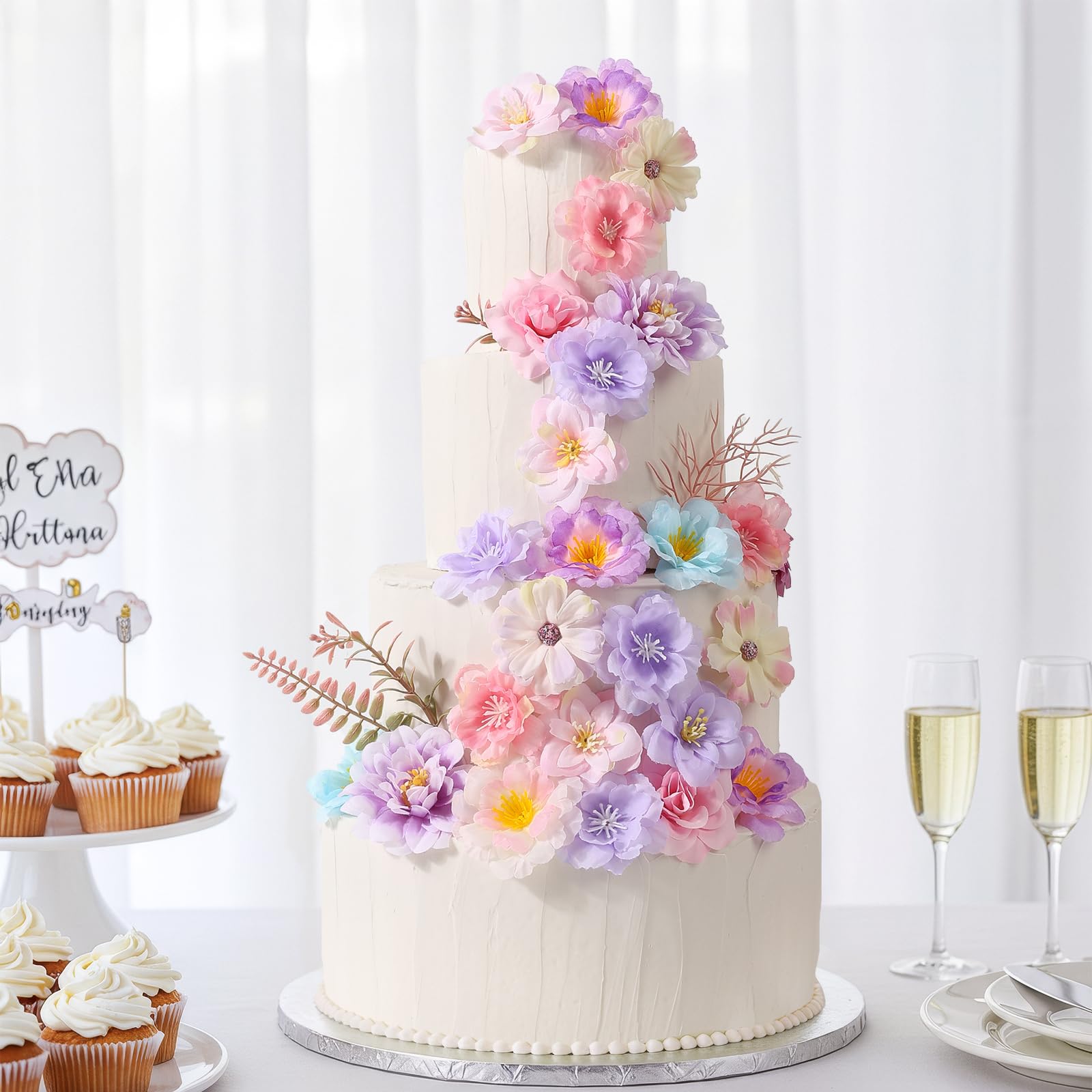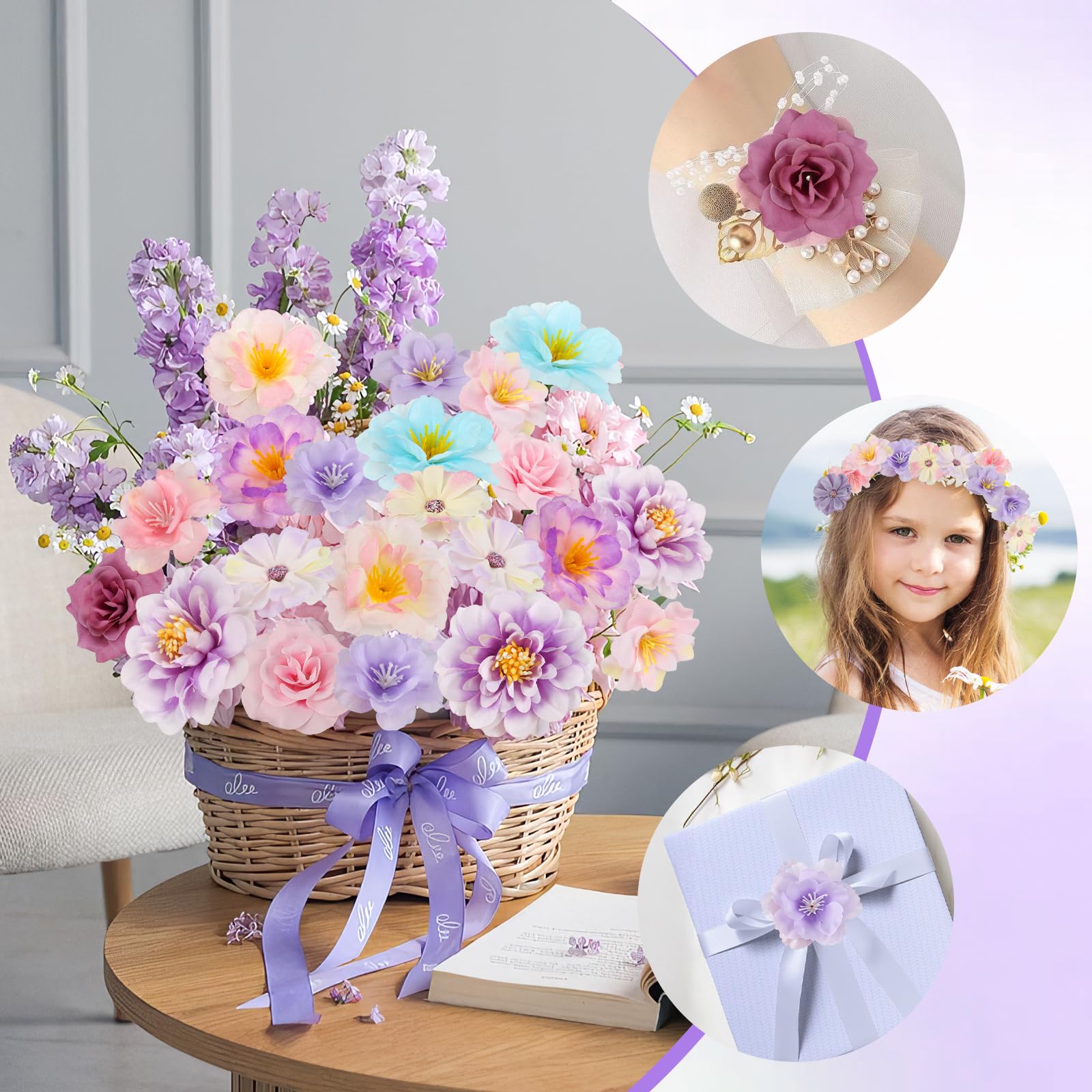 Perfect for DIY & Events: Ideal for DIY crafts, school activities, artists, photographers, and event planners, these faux flowers can be sewn, glued, or pinned onto cakes, clothing, wreaths, hair accessories, headbands, graduation caps, leis, gift boxes, vases, floral arrangements and backdrops—perfect for birthdays, weddings, fashion party, baby showers, graduations, and large event setups, reducing decoration cost for recurring projects