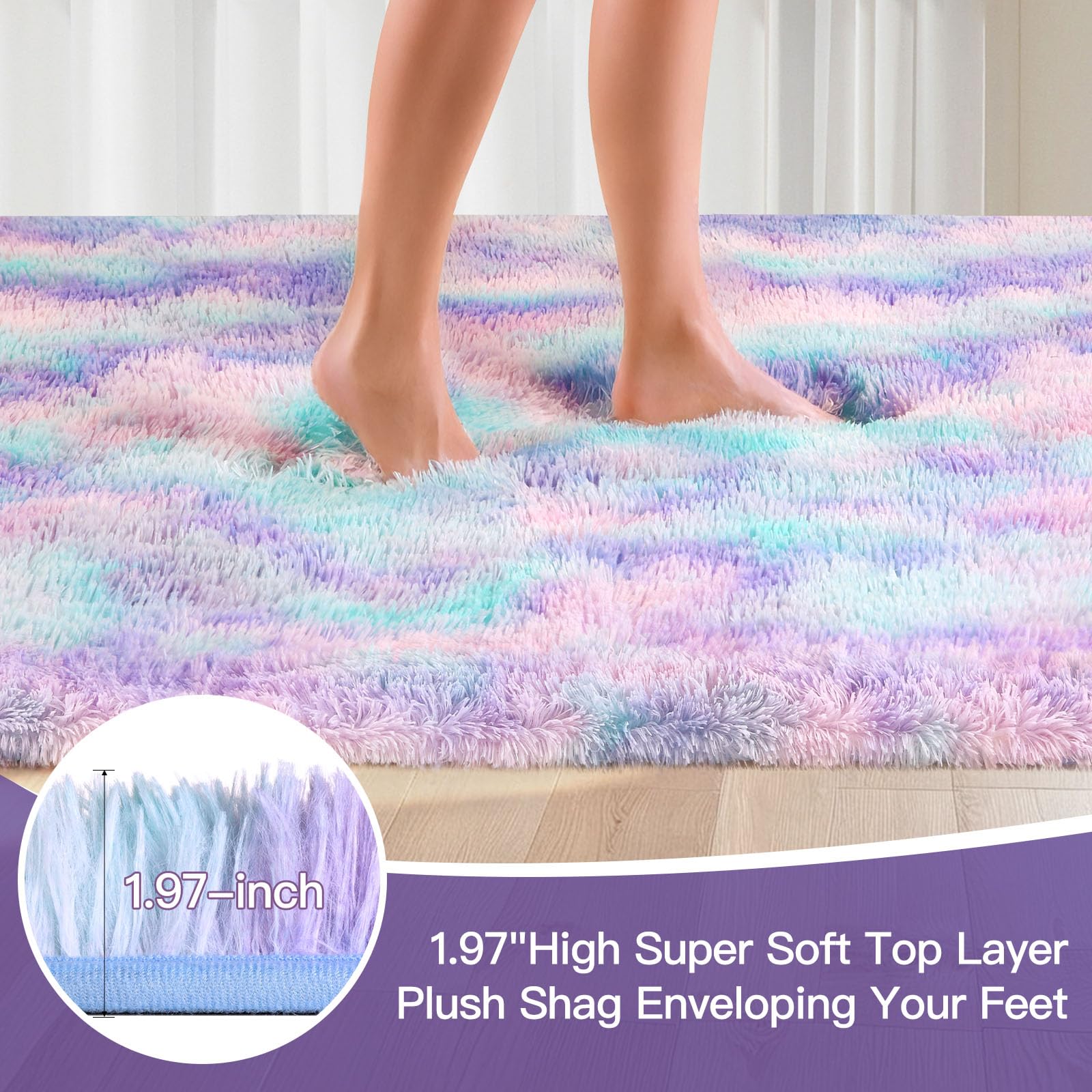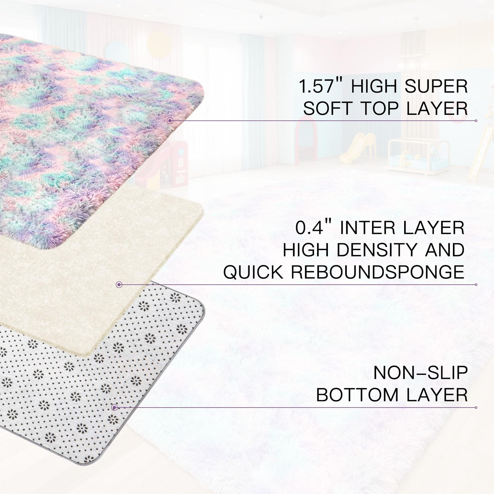 【NON-SLIP BOTTOM DESIGN】- The Living Room Fluffy Rug is covered with thousands of plastic beading dots , they can help to increase the friction between the carpet and the floor,and give the carpet a certain non-slip function. Grips bottom, Non-slip and does not harm the floor. Keep the rug stay in place.