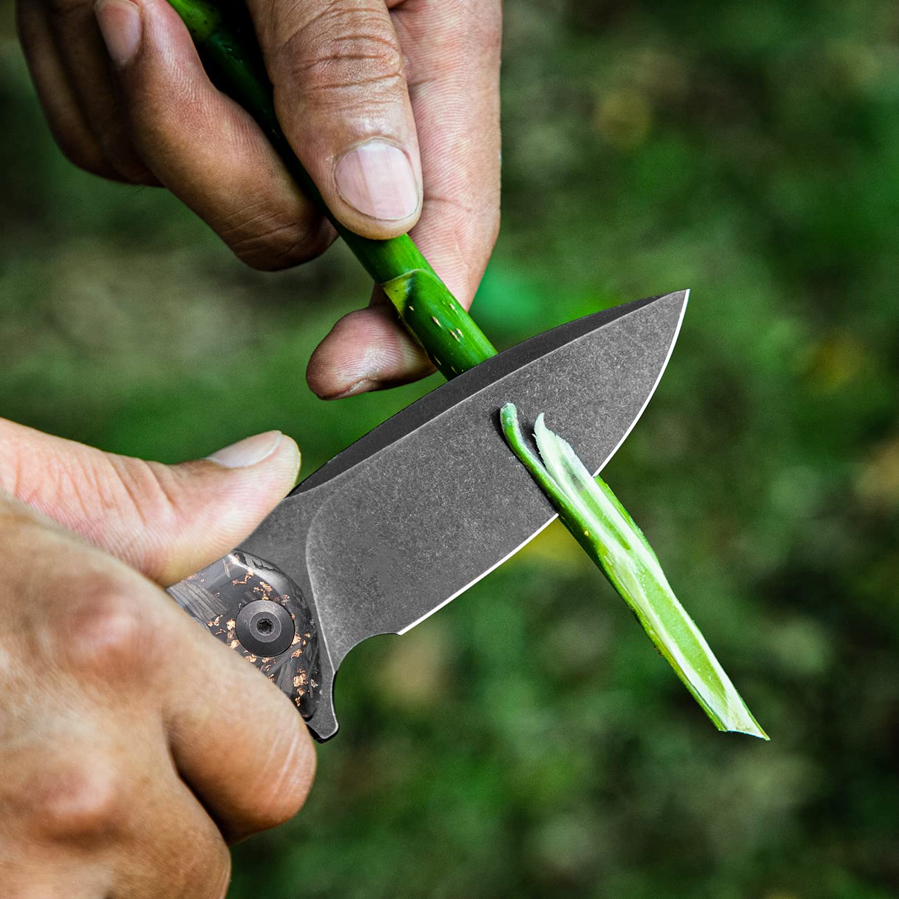 ✅Interesting Knife Handle- Durable simple and comfortable shredded carbon fiber and copper shred in clear resin handle really catches the eye in natural sunlight.Ideal gift for men for birthday,Valentines Day, Father's Day, birthday, and Christmas.