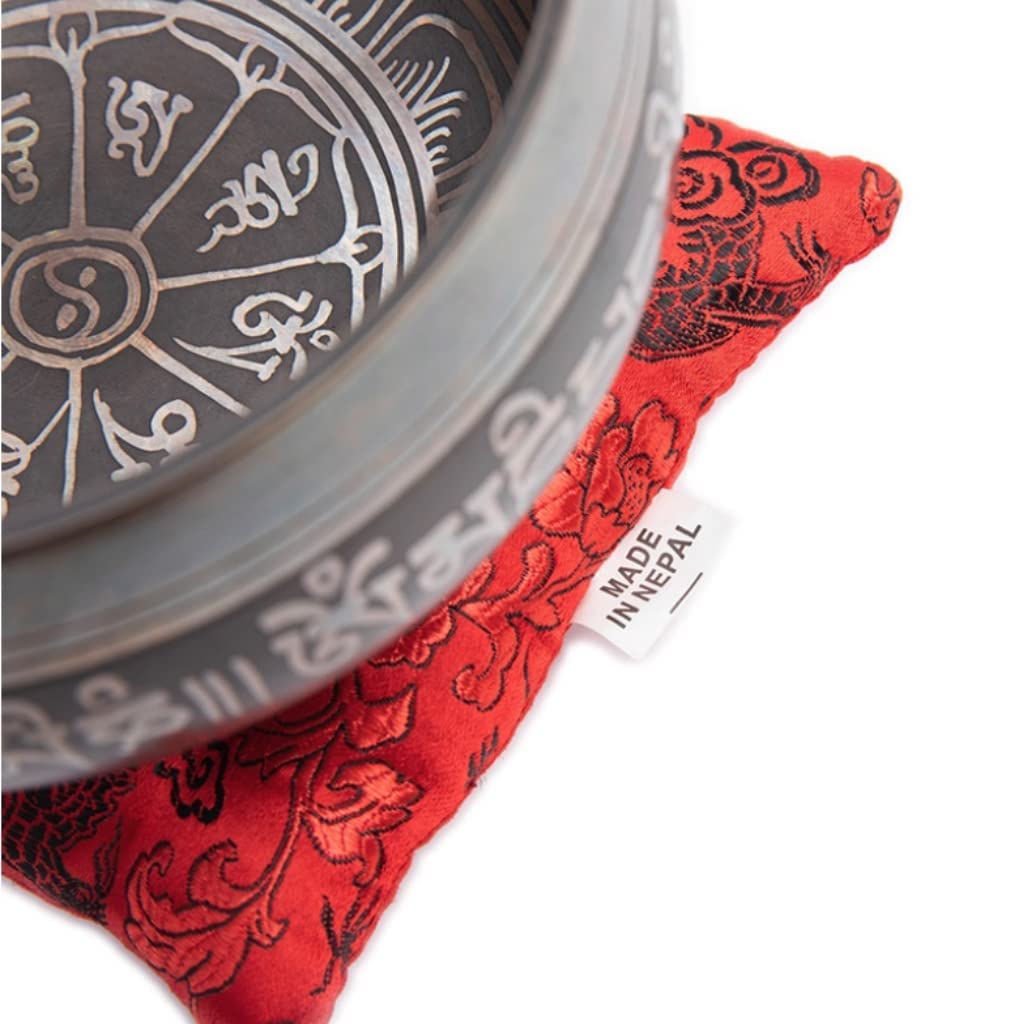 COMPLETE SET: Includes 4” Hand hammered singing bowl x 1, hand-sewn silk cushion x 1, mallet covered with black leather x 1. A full set designed to create a peaceful environment for meditation, yoga, and relaxation.