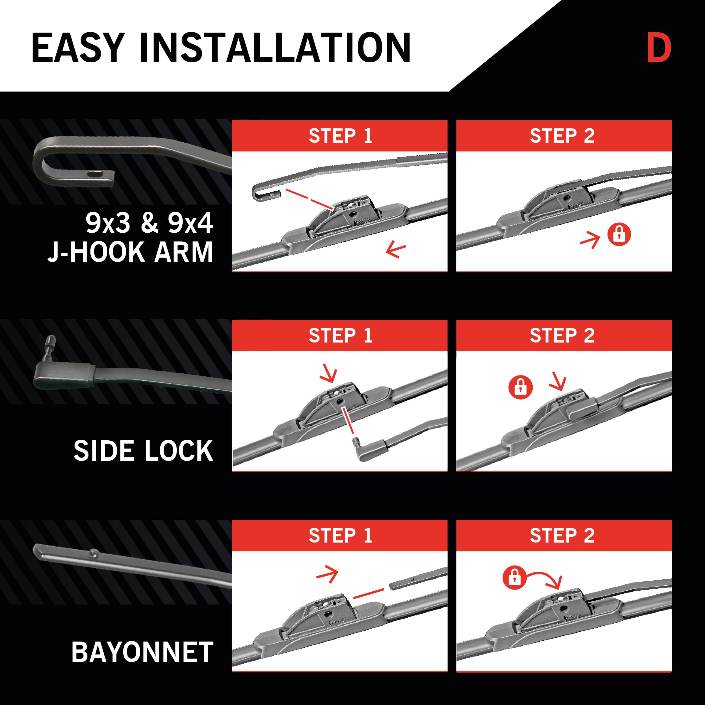 QUICK AND EASY INSTALLATION: Enjoy hassle free installation within minutes with our windshield wipers; Diamond wipers are compatible with various arm types so you do not have to worry about seeking another replacement - just connect, install, and wipe