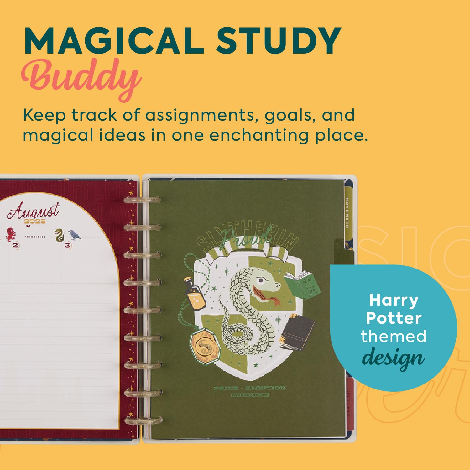 HARRY POTTER STUDENT 2025 PLANNER: Our 2025 student planner features an iconic Wizarding World design with elements like spell books, potions, wands, and the Golden Snitch. The classic size has room for daily planning, writing, and decorating for school, work, or home. Write out your priorities and add stickers to personalize your spread!