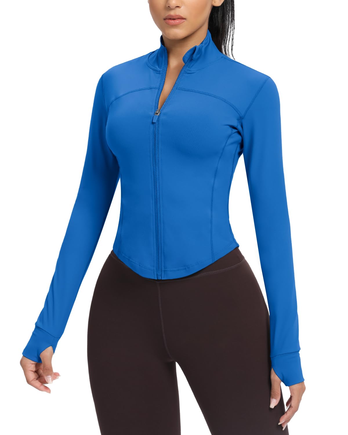 FASHION CROPPED DESIGN: This is a really nice fitting and slim cut workout jacket.The waist line perfectly shows the figure.It’s high stretchy helps to sculpt your body,make you looks more cute and attrictive.