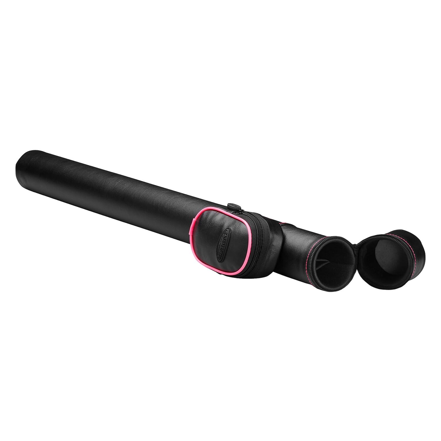 The ultimate solution in cue transportation is the Case master Q-Vault supreme. This cue case features a classic leatherette exterior engineered to repel the elements. Keep your cues in the perfect dry condition while safeguarding them from warping. Inside, the hard resin shell is covered in a soft cloth lining, bolstering your cues against heavy impacts and preventing cracking and breaking. The Q-Vault is your total solution for a night out At the pool hall or your buddy’s man Cave. It has a large pocket perfect for holding all of the accessories you might need to dominate the competition, such as extra tips, shapers, chalk and other repair tools. The Q-Vault features a handy carrying handle for convenient, easy transport. The Q-Vault supreme stores one butt and one shaft.