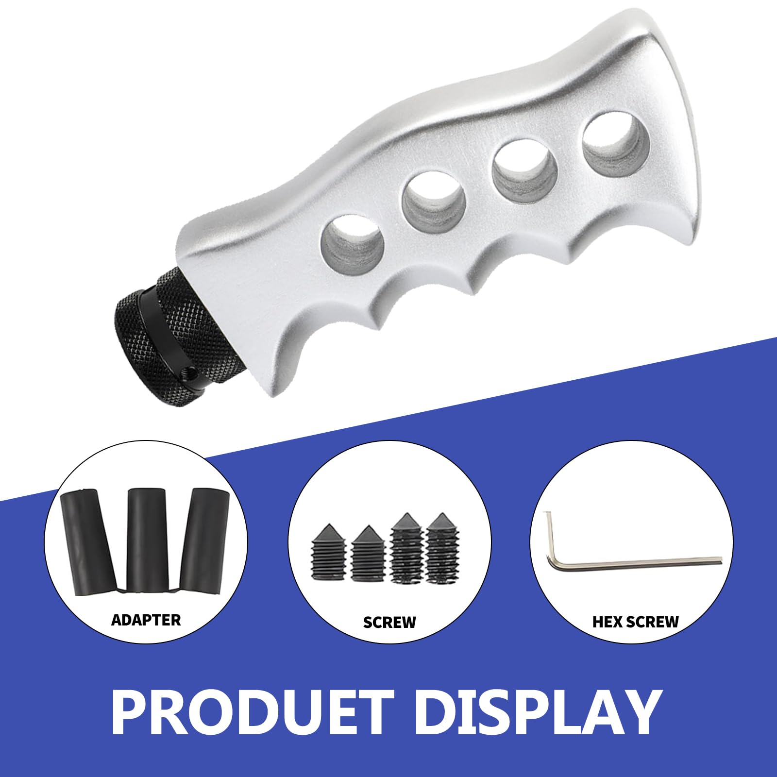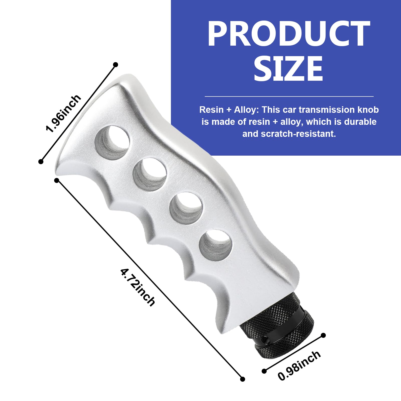Eratus 1 PC Car Shift Knob with M8/M10/M12 Adapters, 1.96 " x 4.72 " x 0.98 " Four-hole Knife Handle Resin Metal Easy-grip Gear Lever, Modification Accessories for Manual Transmission Cars (Silver)