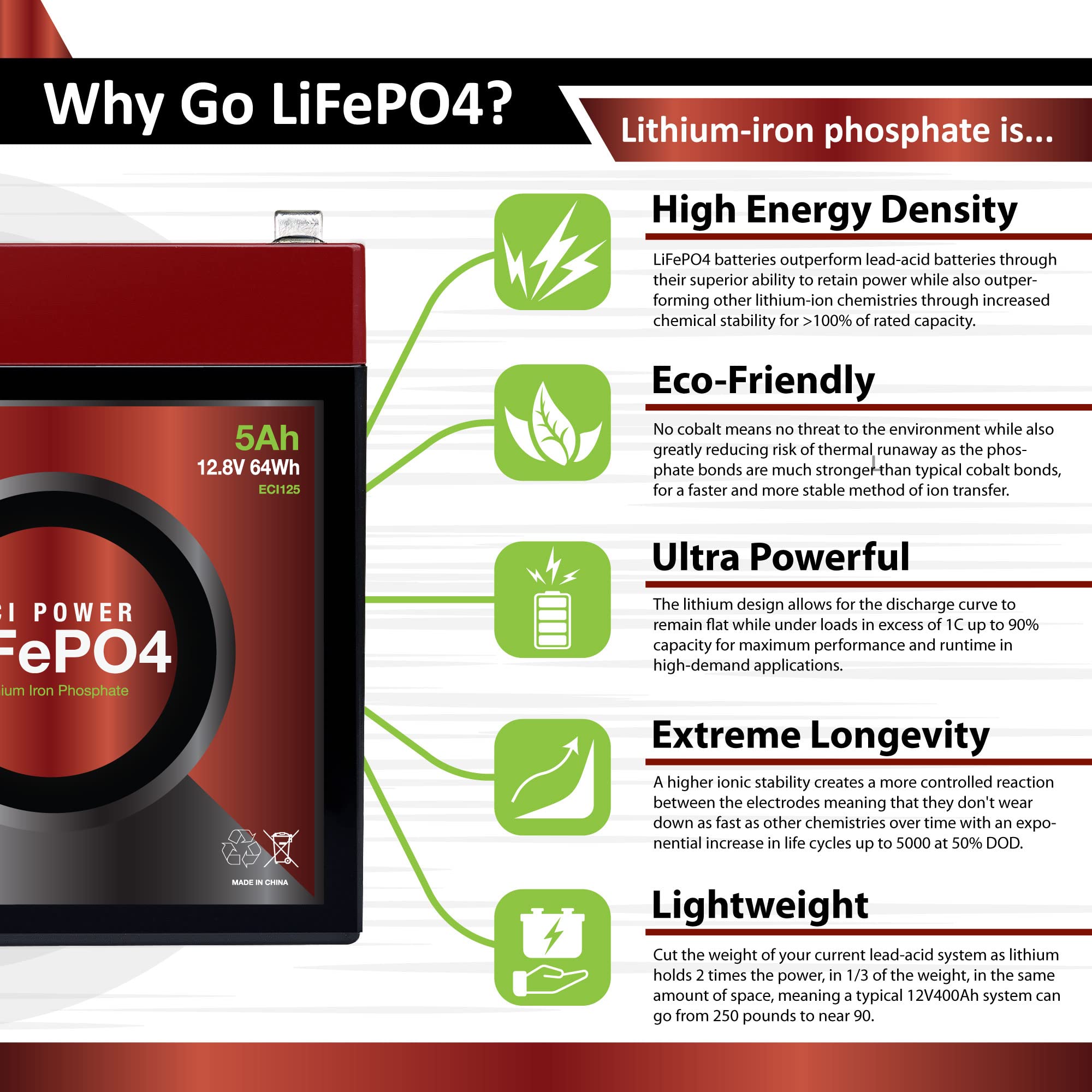 Unmatched Technology: The ECI Power LiFePO4 battery is designed to meet the needs of modern energy applications while exceeding performance comparable to even the most expensive batteries on the market. Also supports expansion up to 4 batteries sequenced in either series at 48V 5Ah, or in parallel at 12V 20Ah.