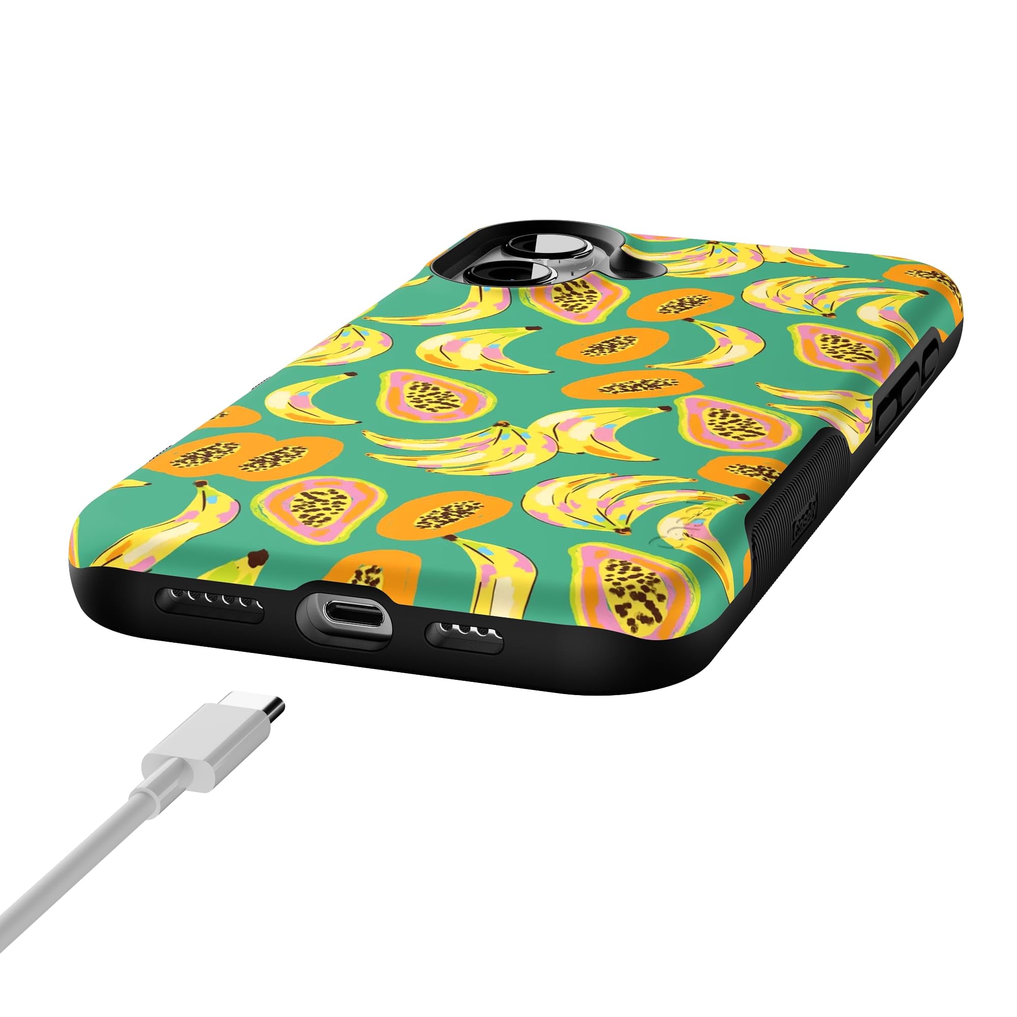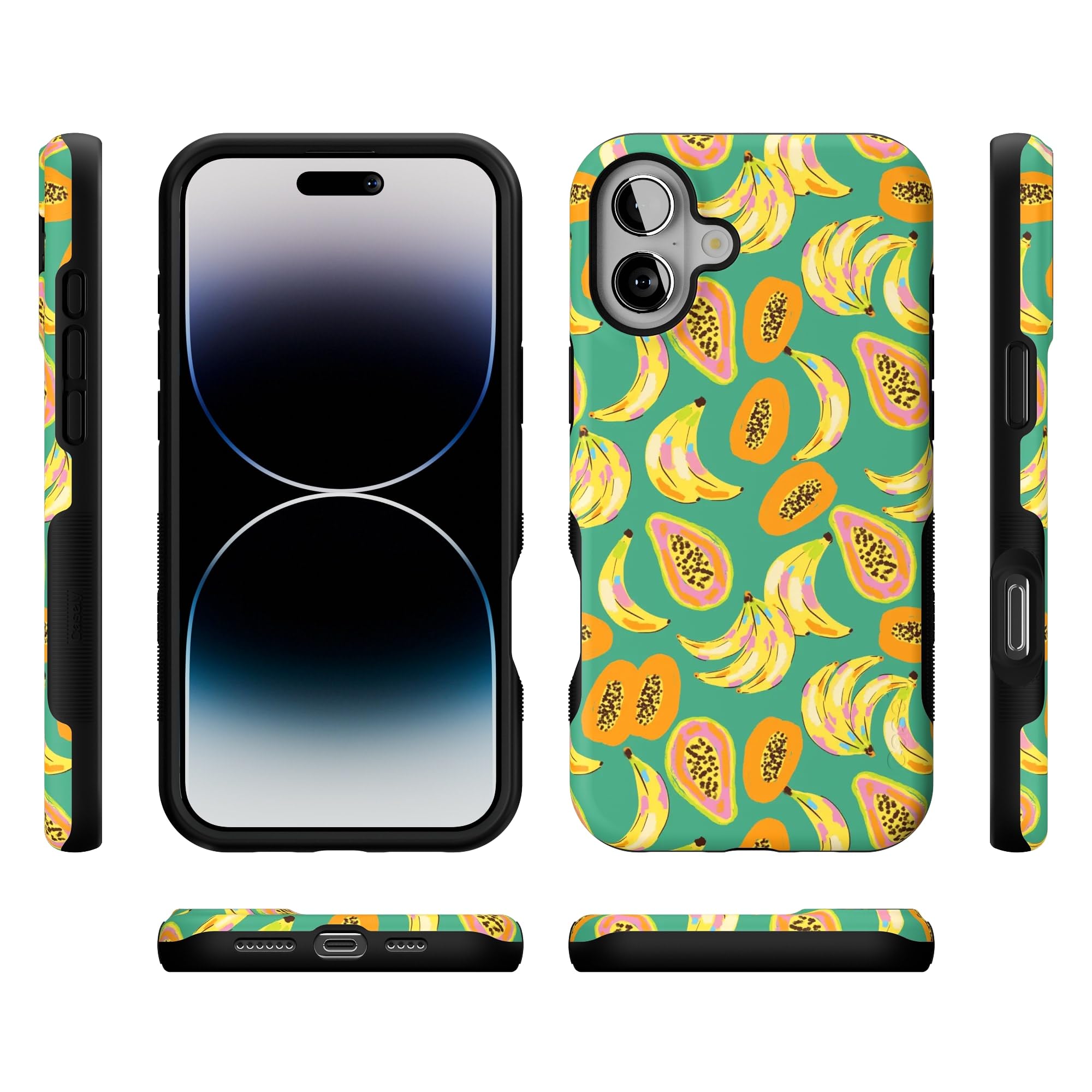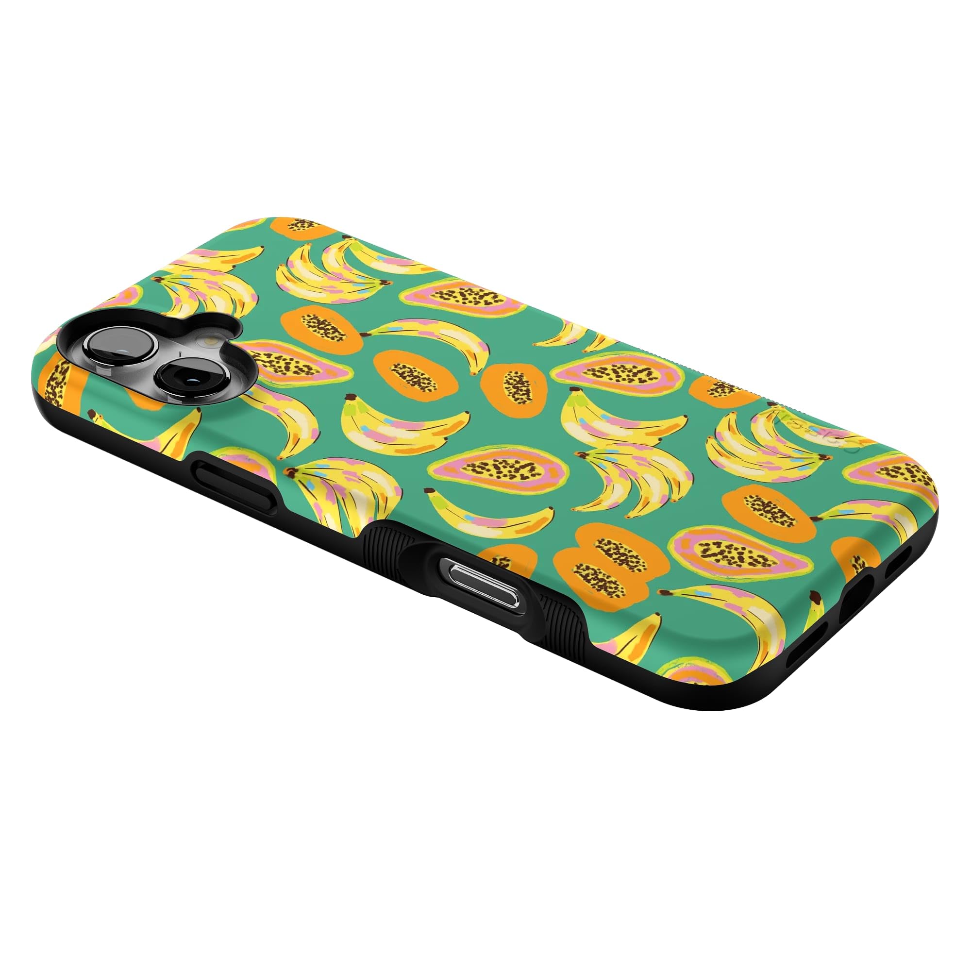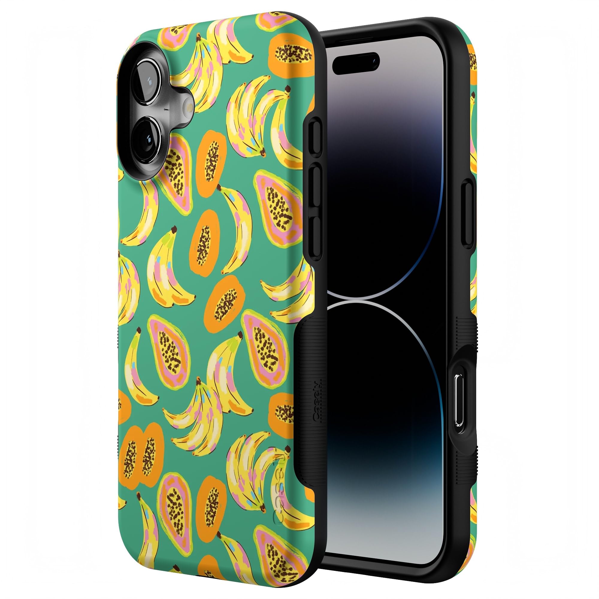 Step into a tropical paradise with the Papaya Palms case. This lively and vibrant phone case is part of a limited-edition collaboration with Dippin' Daisy's, showcasing a playful pattern of ripe bananas and juicy papayas set against a refreshing teal background, capturing the essence of island vibes. Shop the case at Casely, and snag matching swimwear in Dippin' Daisy's Tropical Vacation collection. Designed to make a bold statement, the Papaya Palms case offers more than just style. It provides reliable protection for your phone with its durable, high-quality material, ensuring your device stays safe from everyday wear and tear. Whether you're lounging by the pool or strolling along the beach, this tropical-themed case is the perfect accessory to complement your summer wardrobe. Embrace the fun and vibrant spirit of the tropics with the Papaya Palms case and matching swimwear from Dippin' Daisy's.