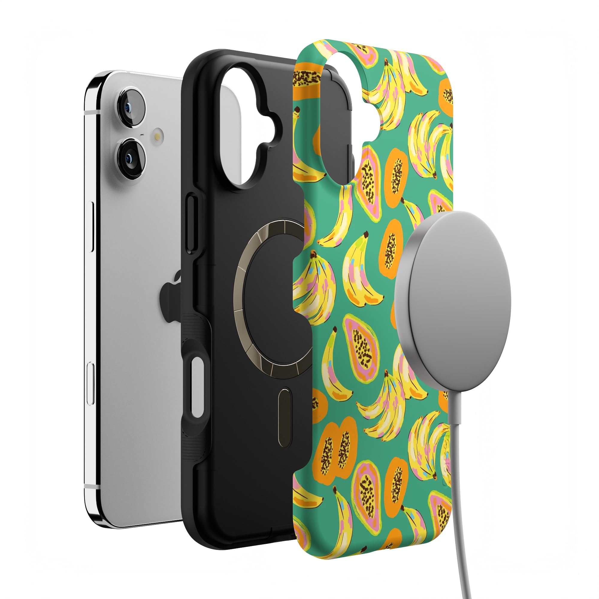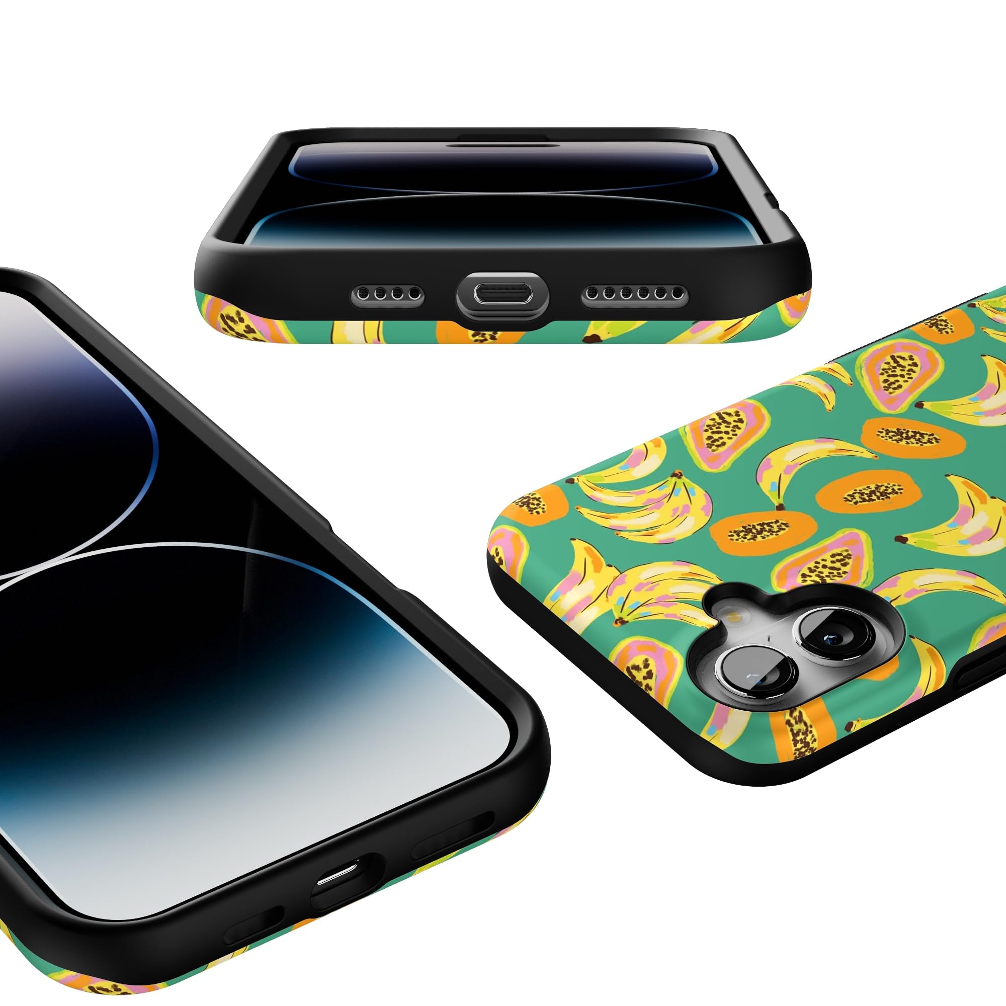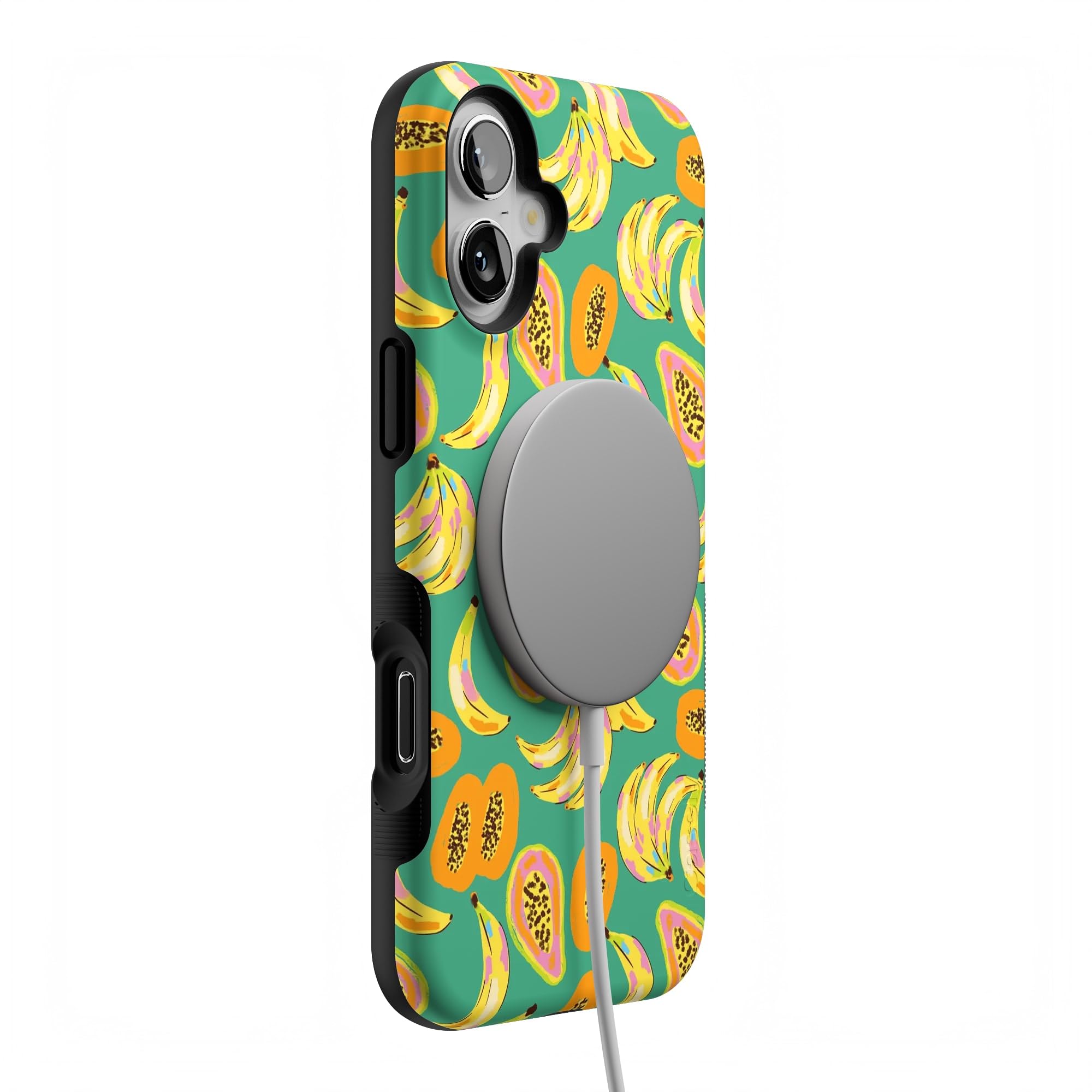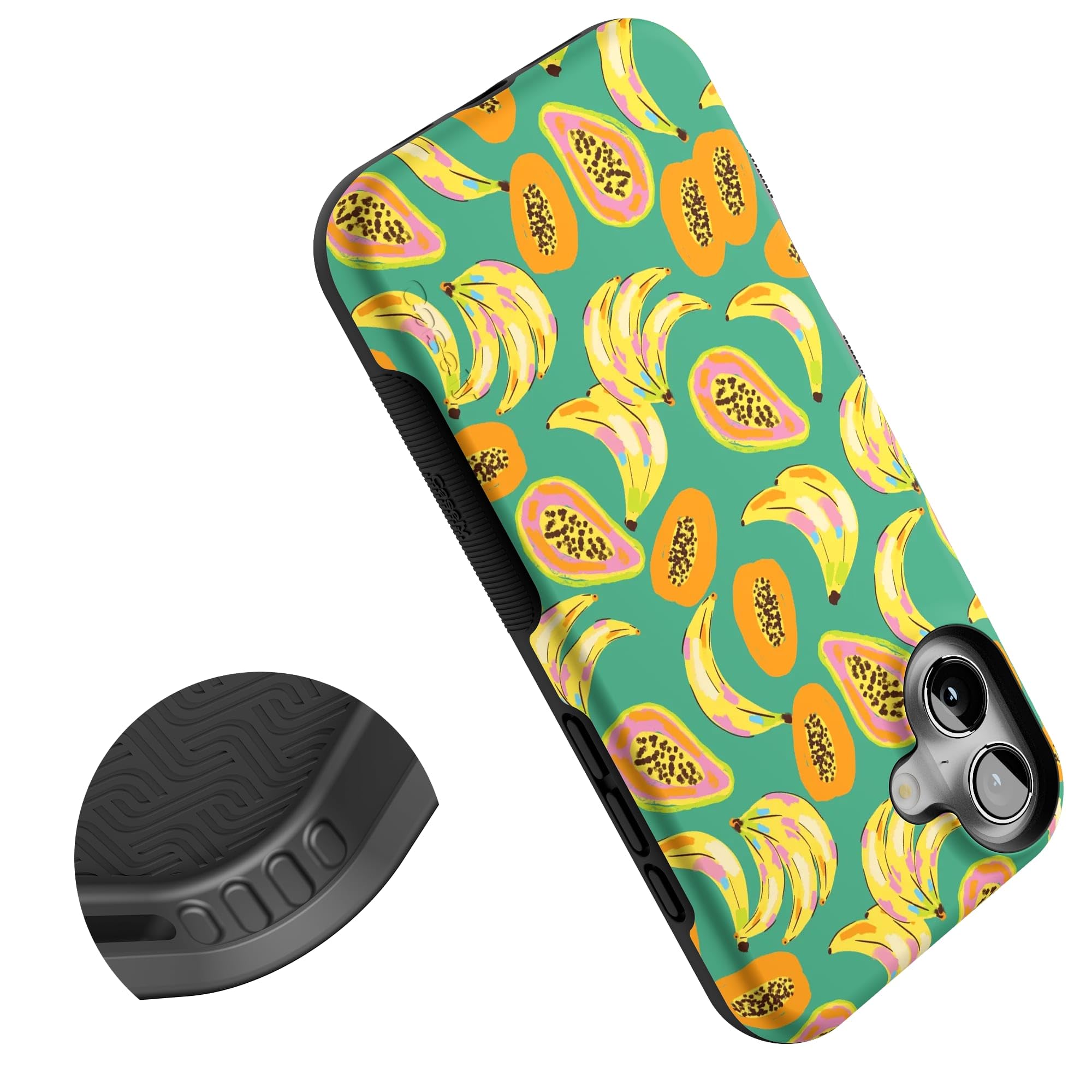 Step into a tropical paradise with the Papaya Palms case. This lively and vibrant phone case is part of a limited-edition collaboration with Dippin' Daisy's, showcasing a playful pattern of ripe bananas and juicy papayas set against a refreshing teal background, capturing the essence of island vibes. Shop the case at Casely, and snag matching swimwear in Dippin' Daisy's Tropical Vacation collection. Designed to make a bold statement, the Papaya Palms case offers more than just style. It provides reliable protection for your phone with its durable, high-quality material, ensuring your device stays safe from everyday wear and tear. Whether you're lounging by the pool or strolling along the beach, this tropical-themed case is the perfect accessory to complement your summer wardrobe. Embrace the fun and vibrant spirit of the tropics with the Papaya Palms case and matching swimwear from Dippin' Daisy's.
