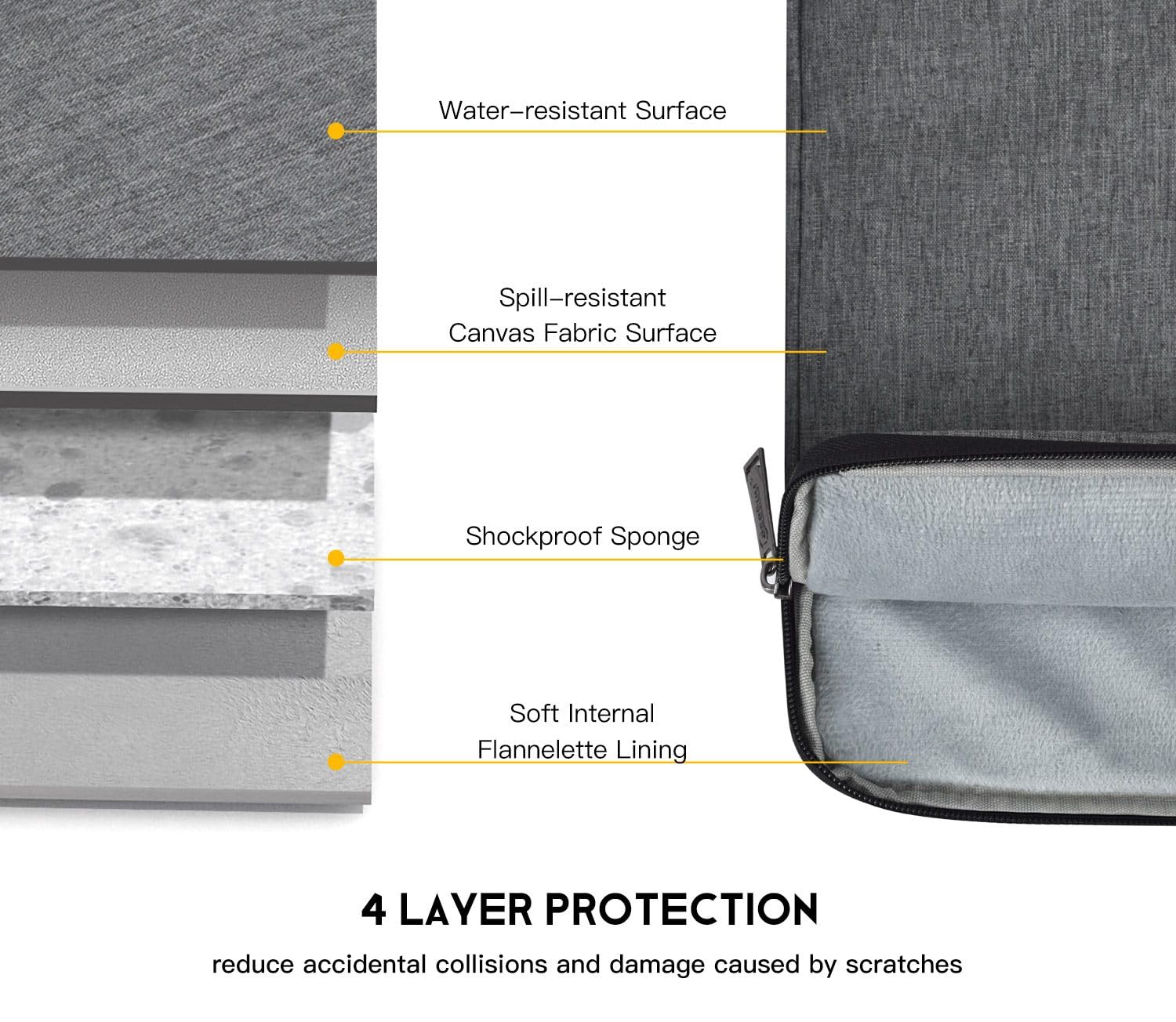 【360° SHOCKPROOF SOFT LINING】 - Made of soft flannelette inside, extra soft anti-static shockproof fluffy fabric, the product can effectively absorb impacts and reduce damages caused by accidentally bumping, and protects your notebook from scratches