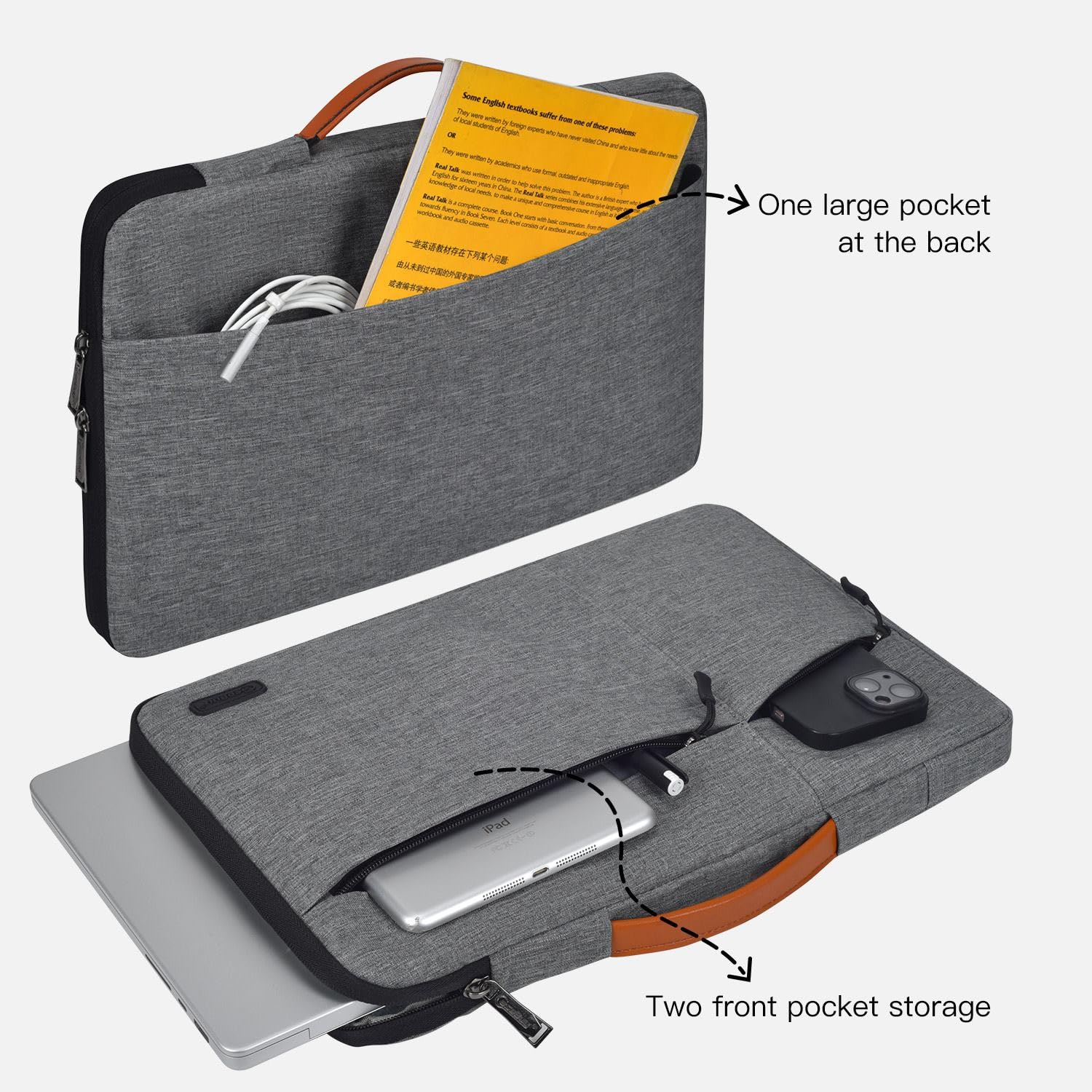 【ENOUGH SPACE STORAGE & SMOOTHLY ZIPPER】 - Two pockets in front and one large pocket in back, enough space to keeping, mouse, cable, cellphone, memory cards, external hard drive, pens etc. Sleeve bag with double zipper can be fully opened easily access your tablet/laptop