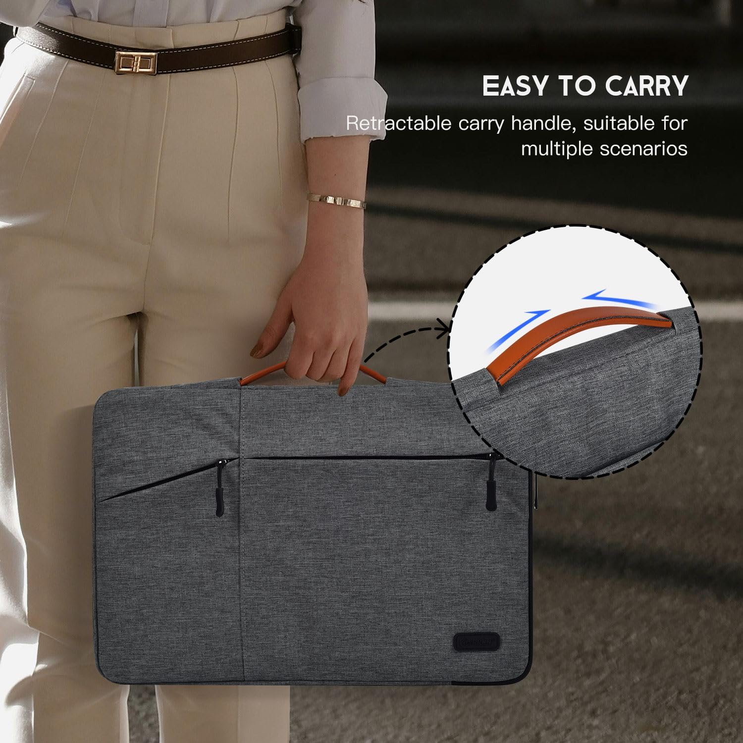 【EXTENDABLE HAND STRAP & ESAY TO CARRY】 - Made of premium microfiber leather handle. Comfortable and sturdy extendable especially for long time carry when you are tired to carry as a sleeve