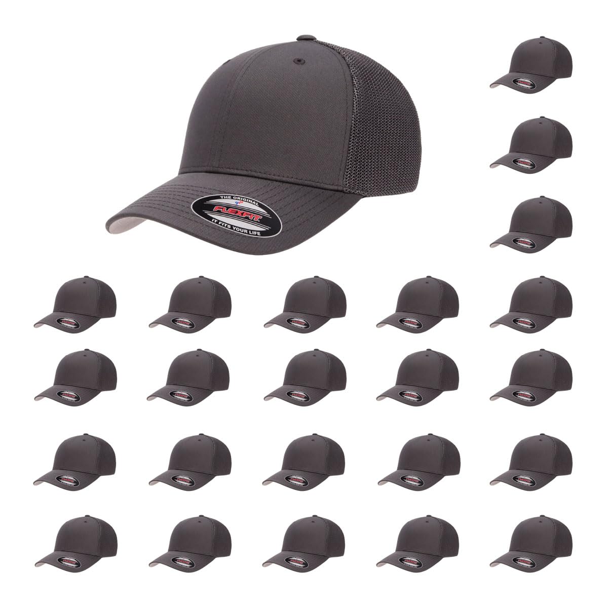 **SIZING REMINDER**: Measure your head and refer to the size chart for the perfect fit. Classic Trucker Style with a Performance Twist: Mid-profile structured crown and mesh back panels meet Flexfit stretch-fit technology for superior comfort and shape retention