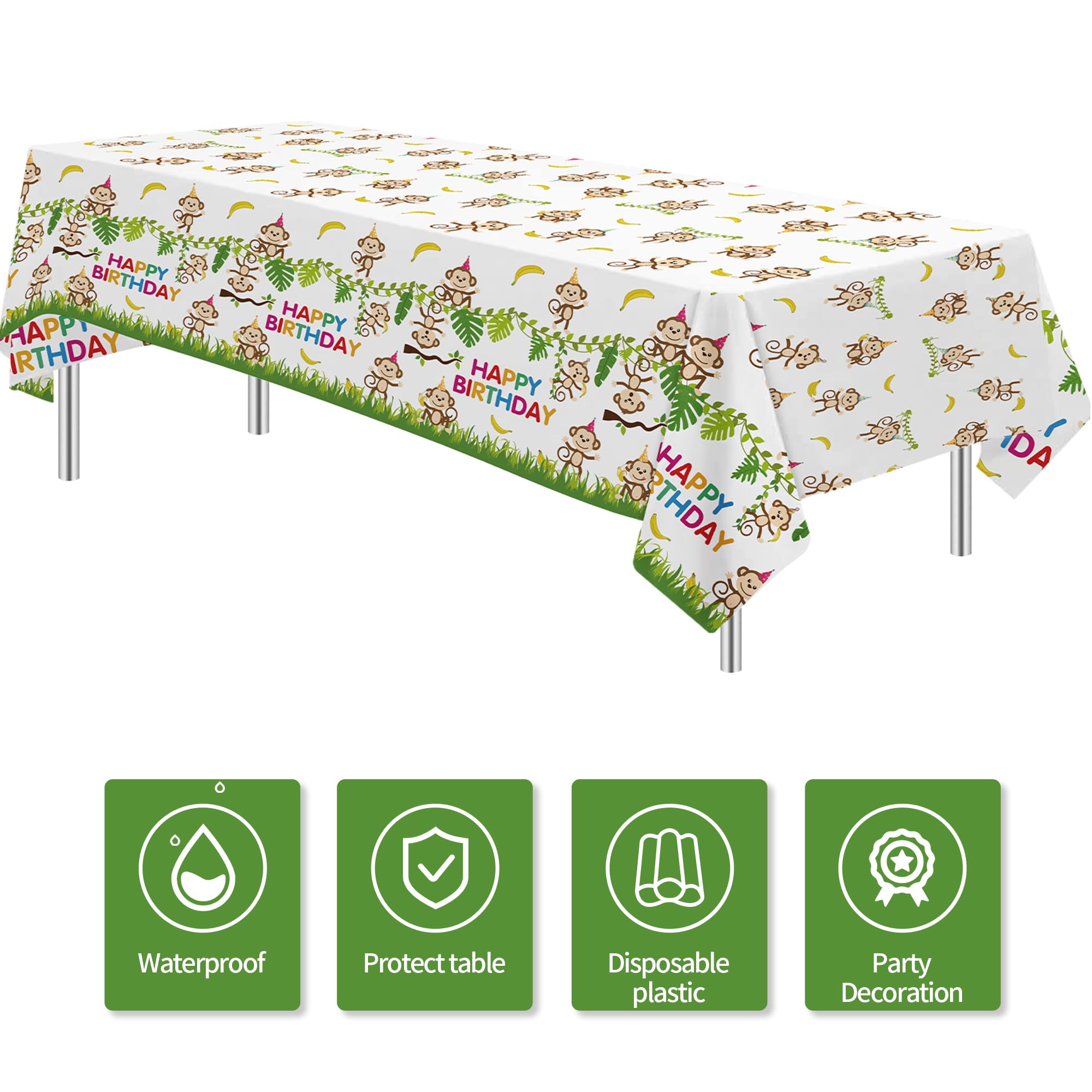 【Save Time】For easy setup and cleanup, simply dispose of monkey party decoration table cloth after use. No need to worry about washing—just enjoy your celebration and let us handle the mess