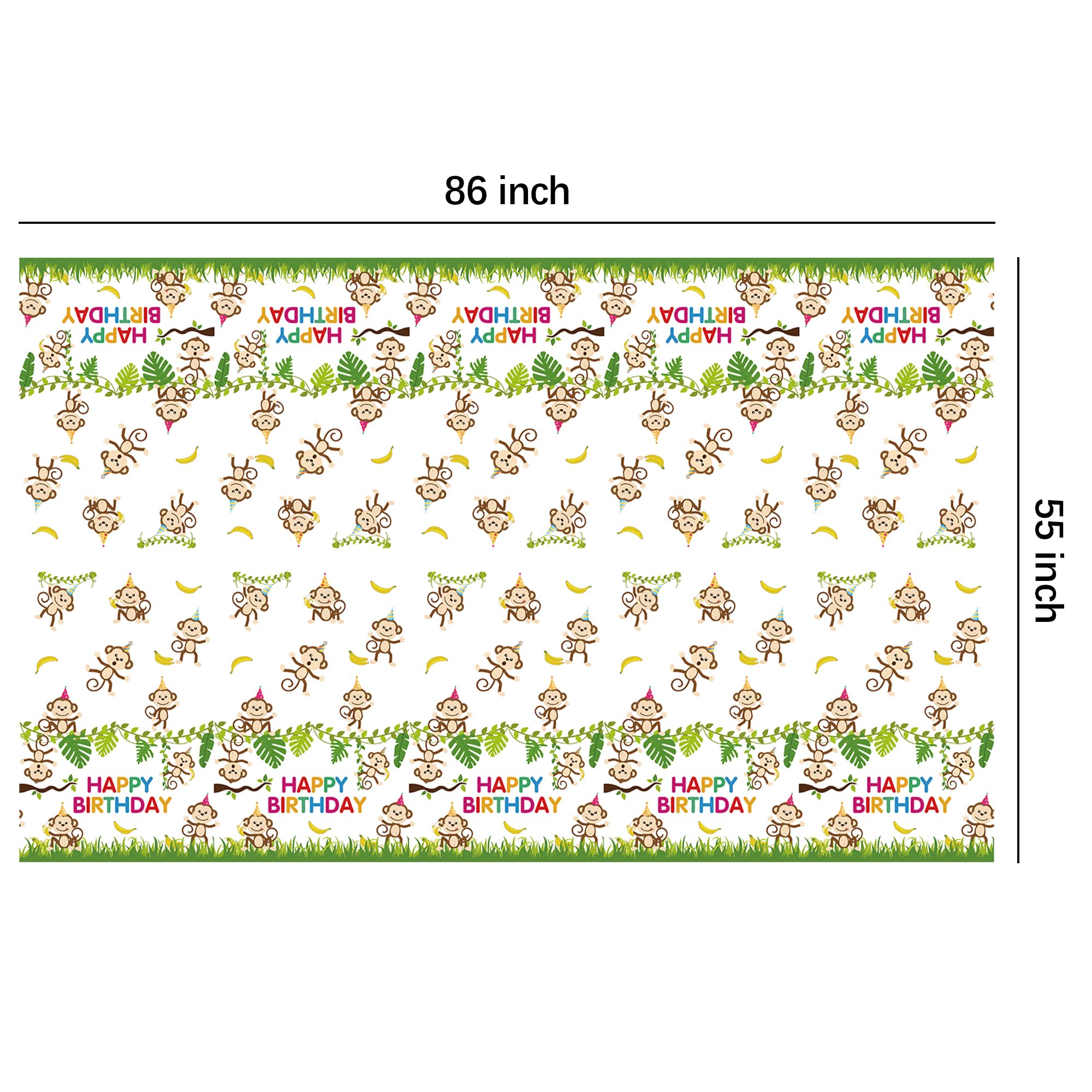 【Appropriate Size】3 pieces of jungle animal monkey birthday party tablecloths set, the size of each tablecloth for a birthday is 86 x 55 inches, which fits 8-foot-long tables that can accommodate 8-10 people